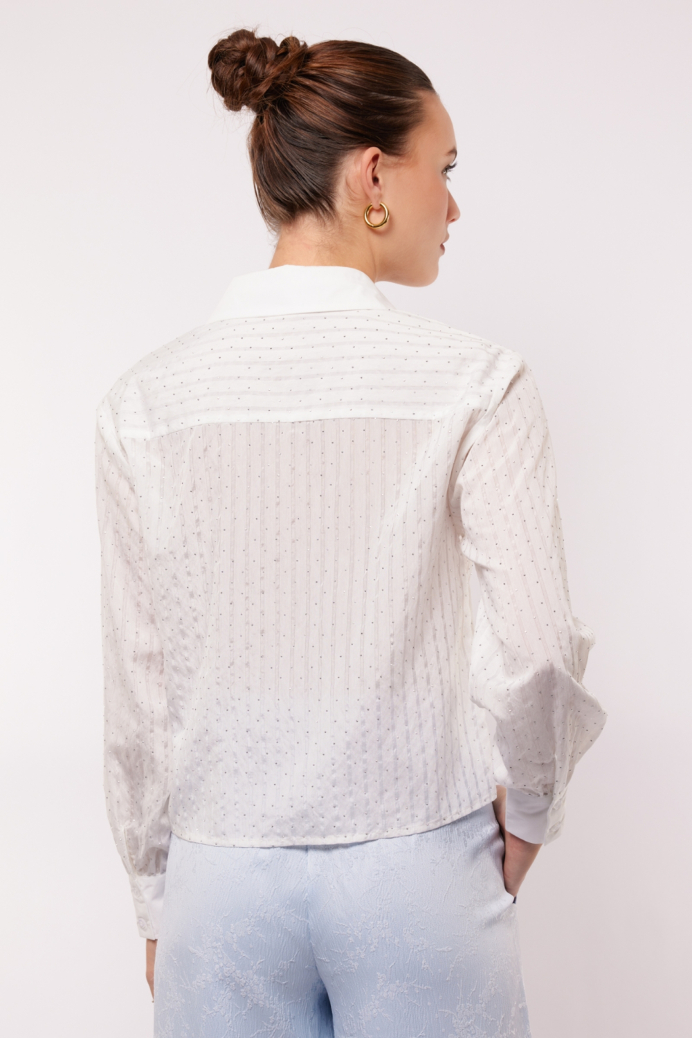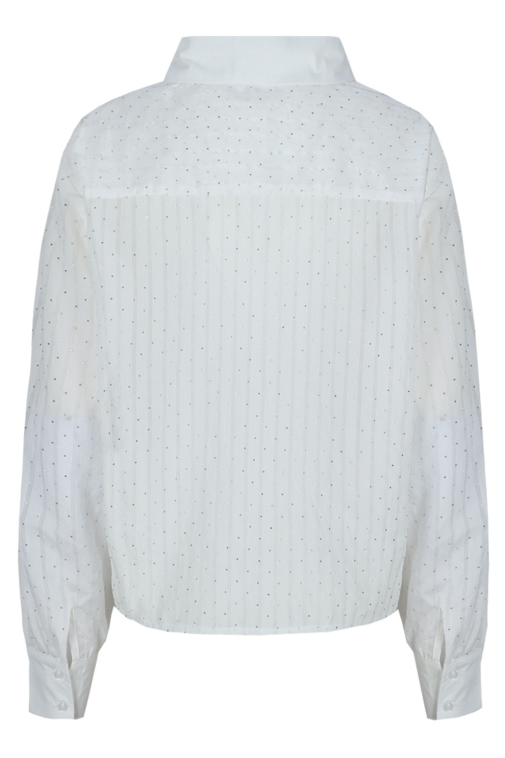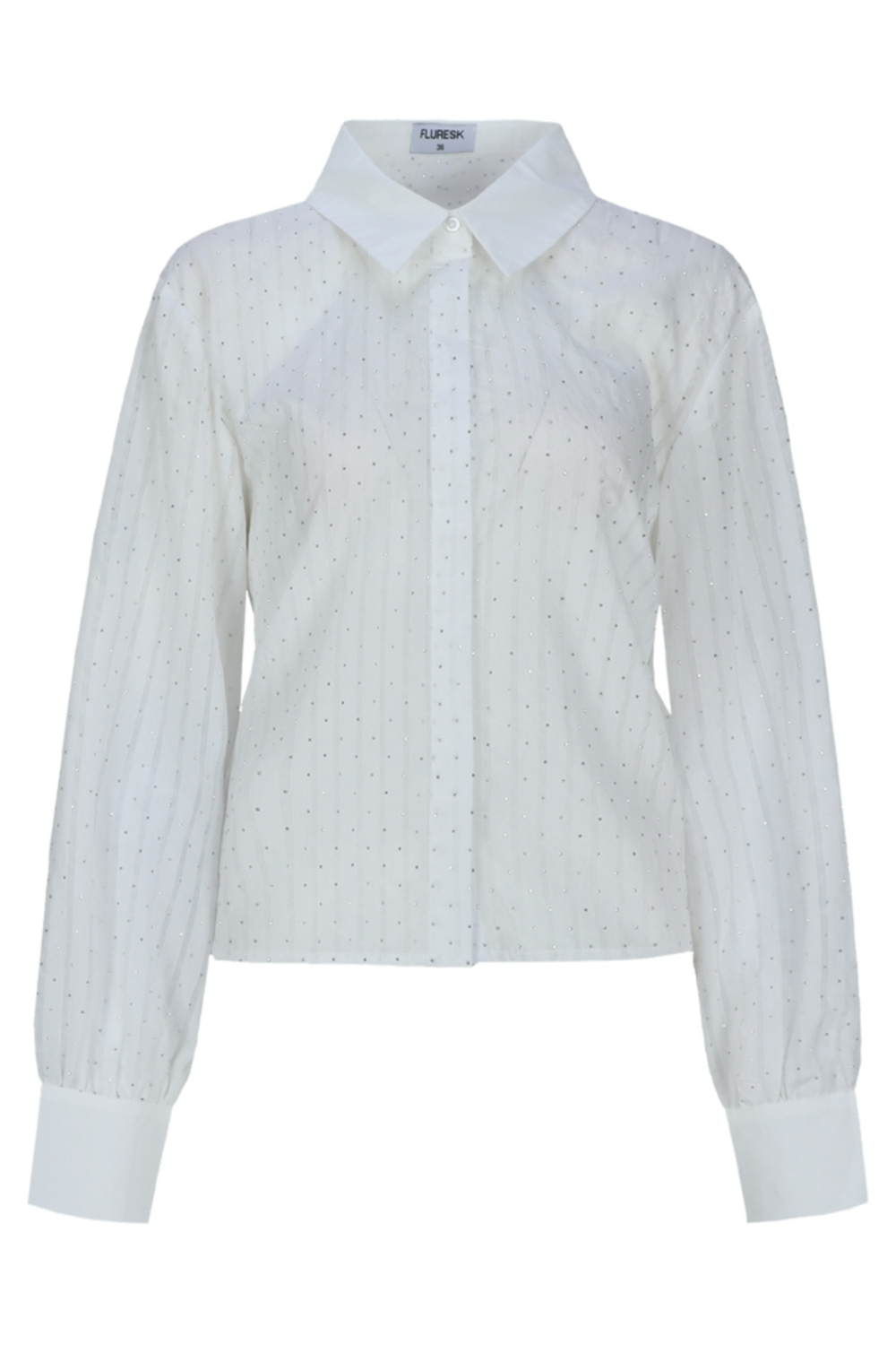 De Fluresk damesblouse in de kleur 011 OFFWHITE is een veelzijdige keuze voor jouw garderobe. Deze blouse biedt een regular fit, wat zorgt voor een comfortabele pasvorm die geschikt is voor diverse lichaamstypes. Gemaakt van 100% polyester, voelt de stof licht en luchtig aan, perfect voor het lente seizoen. De blouse heeft een subtiele, gestreepte textuur met kleine stipjes, wat een elegante uitstraling geeft zonder te opvallend te zijn. De klassieke puntkraag en knoopsluiting voegen een verfijnde toets toe, waardoor het perfect is voor zowel formele als informele gelegenheden. Of je nu een werkdag op kantoor hebt of een casual dagje uit, deze blouse is een passende keuze. Combineer het met een nette broek voor een zakelijke look of draag het met een jeans voor een meer ontspannen stijl. De lange mouwen en de normale lengte maken het gemakkelijk om te combineren met verschillende outfits. Met de Fluresk blouse voeg je een tijdloze en stijlvolle touch toe aan jouw dagelijkse kledingkeuze.