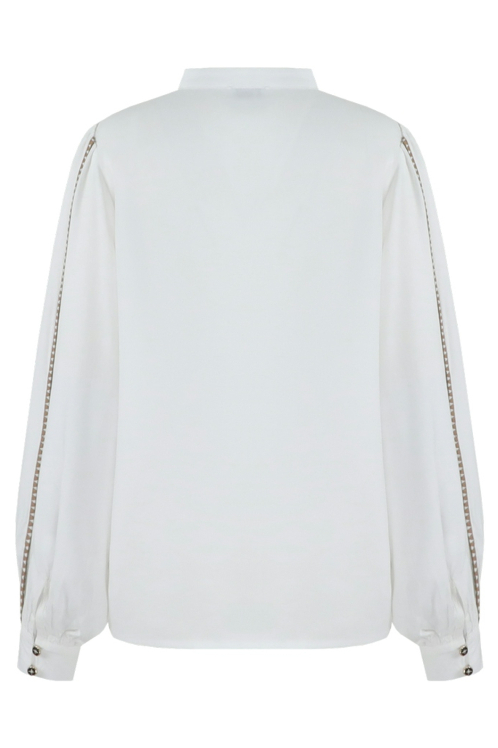 Deze elegante damesblouse van Fluresk in 011 OFFWHITE is een stijlvolle keuze voor je wintergarderobe. Gemaakt van 100% viscose, biedt het een soepele en zachte draagervaring. De blouse heeft een klassieke ronde hals en lange mouwen, met opvallende details langs de mouwen die zorgen voor een subtiele, maar verfijnde touch. De knoopsluiting voegt een praktische en stijlvolle dimensie toe aan het geheel, terwijl de normale lengte ervoor zorgt dat het moeiteloos te combineren is met verschillende onderstukken.