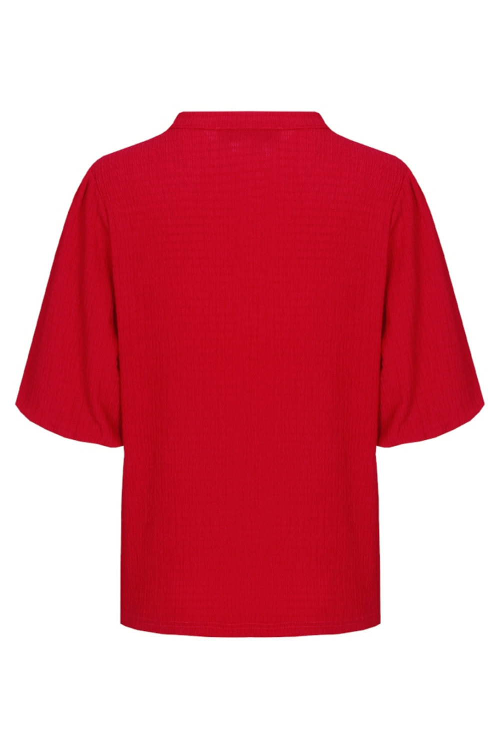 Deze casual blouse van Fluresk in de kleur Ruby Red is een elegante aanvulling op je lente garderobe. De blouse is gemaakt van 95% polyester en 5% elastan, wat zorgt voor een licht en flexibel gevoel. De structuur van de stof geeft een subtiele textuur, terwijl de ronde hals en knoopsluiting een klassieke uitstraling bieden. De korte mouwen maken deze blouse ideaal voor warmer weer, terwijl de normale lengte een veelzijdige pasvorm garandeert. Of je nu een dagje op kantoor hebt of lekker wilt ontspannen met vrienden, deze Fluresk blouse past perfect bij elke gelegenheid. De regular fit en de levendige rode kleur maken het gemakkelijk om dit kledingstuk te combineren met zowel jeans als een nette rok. Met zijn casual stijl is dit een blouse die je graag uit de kast trekt voor diverse dagelijkse activiteiten. Het is een speelse, maar tegelijkertijd stijlvolle keuze voor elke dame.