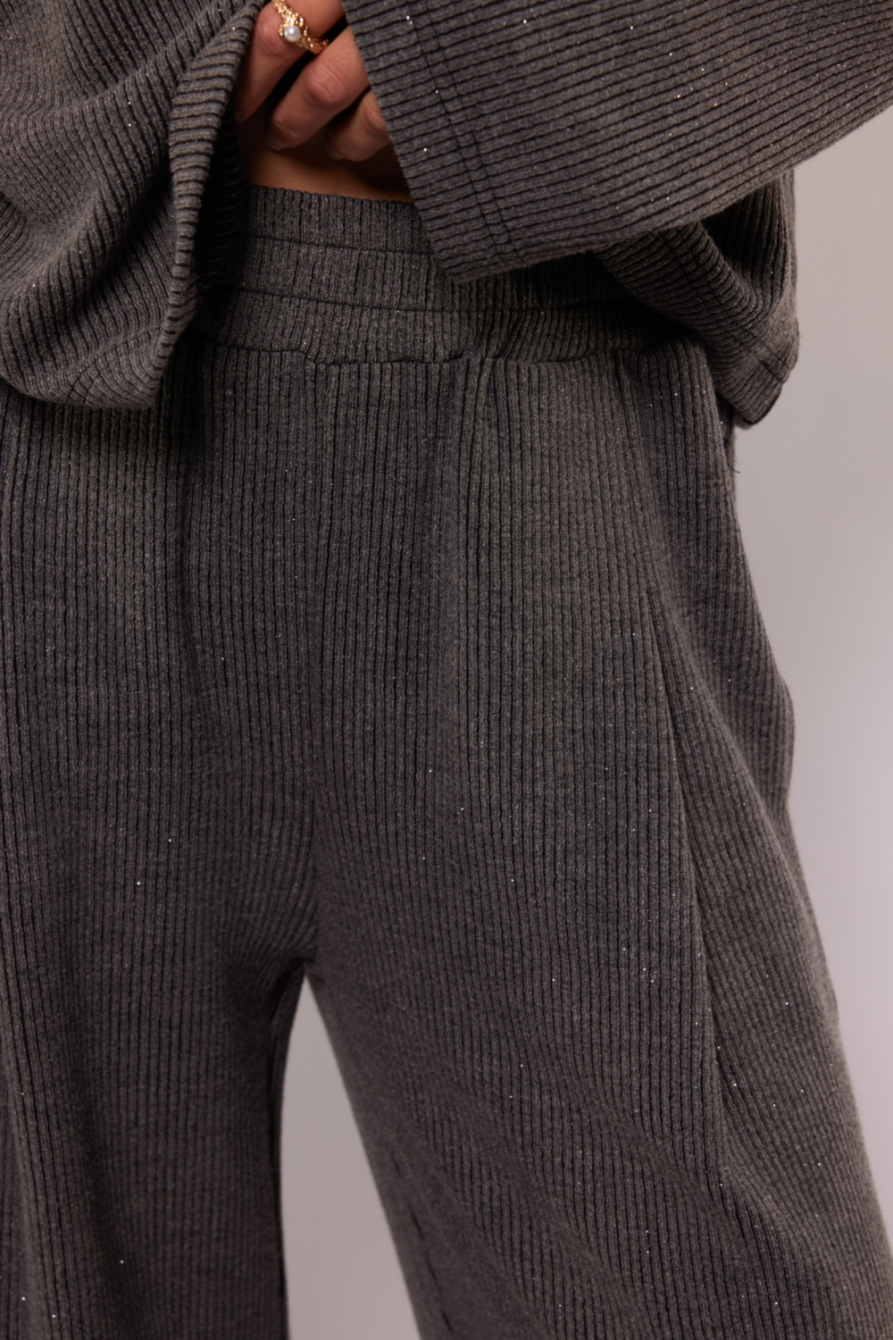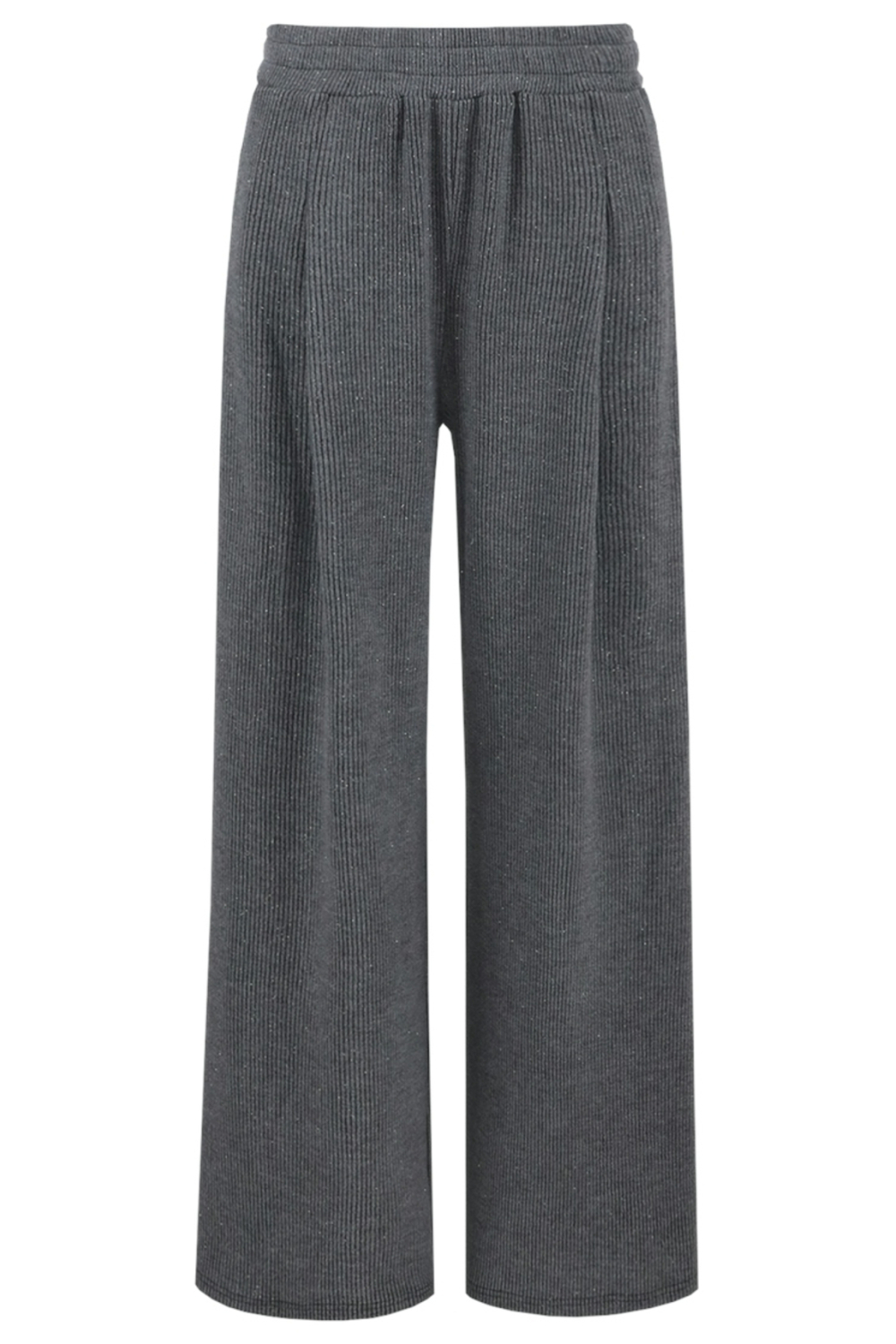 Deze stijlvolle broek van Fluresk tilt je casual garderobe naar een hoger niveau. Met een high waist en een comfortabele wide leg pasvorm, biedt deze broek zowel een moderne uitstraling als comfort. Het materiaal, een mix van polyester, viscose en elastan, zorgt voor een zachte en soepele drapering, ideaal voor een ontspannen dag in de stad of een informele bijeenkomst. De elastische boord en de subtiele glitters in de stof voegen een speels en toch elegant element toe aan dit kledingstuk.