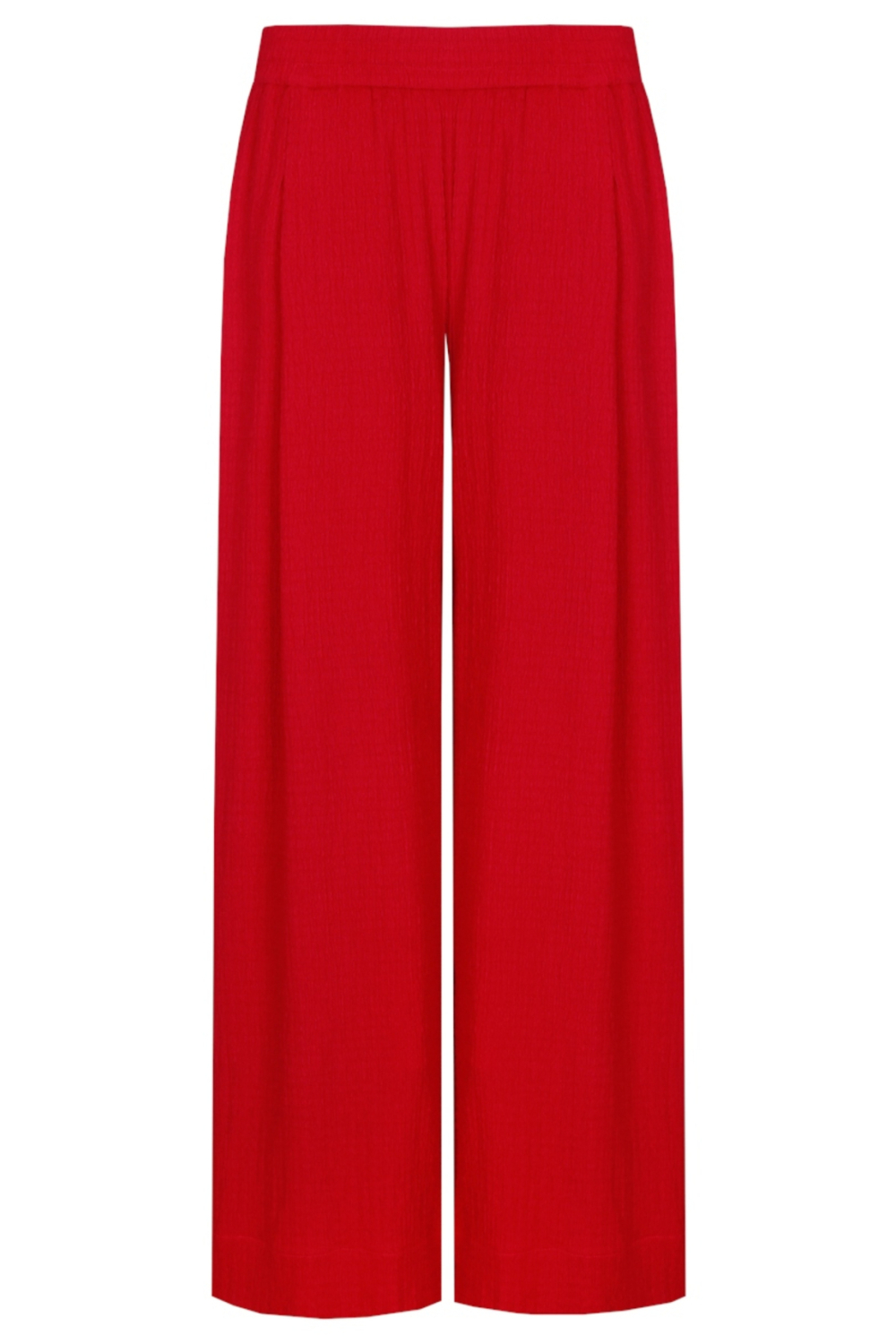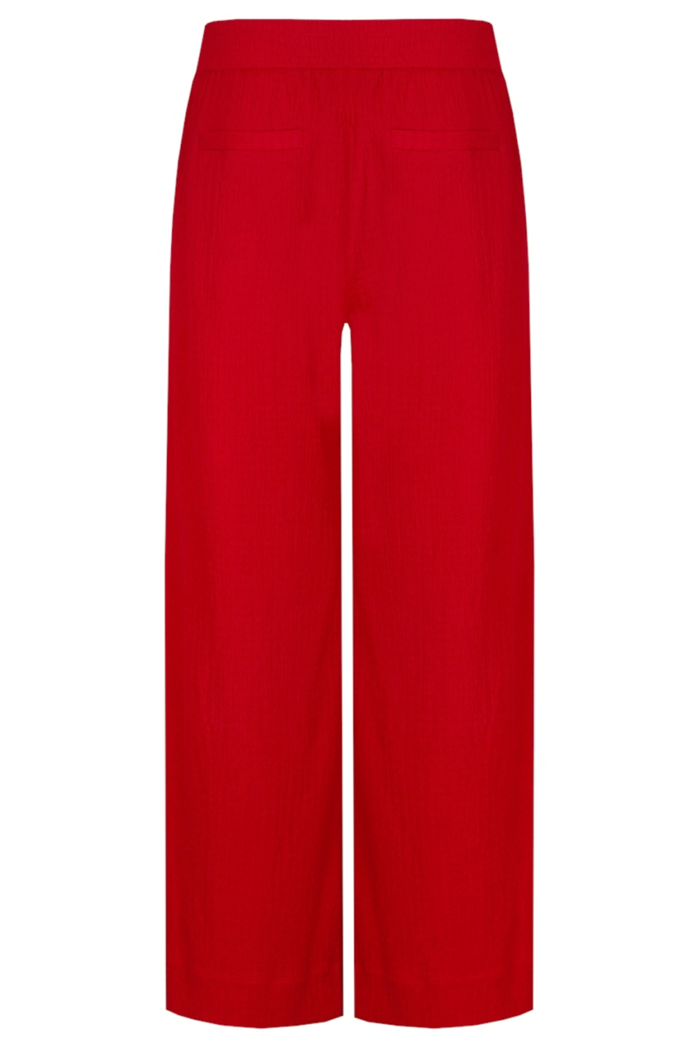 De Fluresk Ruby Red broek is een speelse toevoeging aan je garderobe. Deze damesbroek valt op door zijn opvallende structuurpatroon en rijke, rode kleur. De wide leg-pasvorm zorgt voor een comfortabele look die luchtig aanvoelt, perfect voor de lente. Met zijn elastische boord en steekzakken is deze broek zowel stijlvol als praktisch. Gemaakt van een mix van 95% polyester en 5% elastan, biedt hij een prettige stretch en duurzaamheid. Deze broek is ideaal voor casual gelegenheden. Combineer hem met een eenvoudig T-shirt of een lichte blouse voor een relaxte dag in de stad, of draag hem met een opvallend topje voor een lunchdate. Door de regular waist en normale lengte is hij geschikt voor verschillende lichaamsvormen. Of je nu een dagje gaat shoppen of een informele bijeenkomst hebt, de Fluresk Ruby Red broek is een veelzijdige keuze die je moeiteloos kunt stylen.