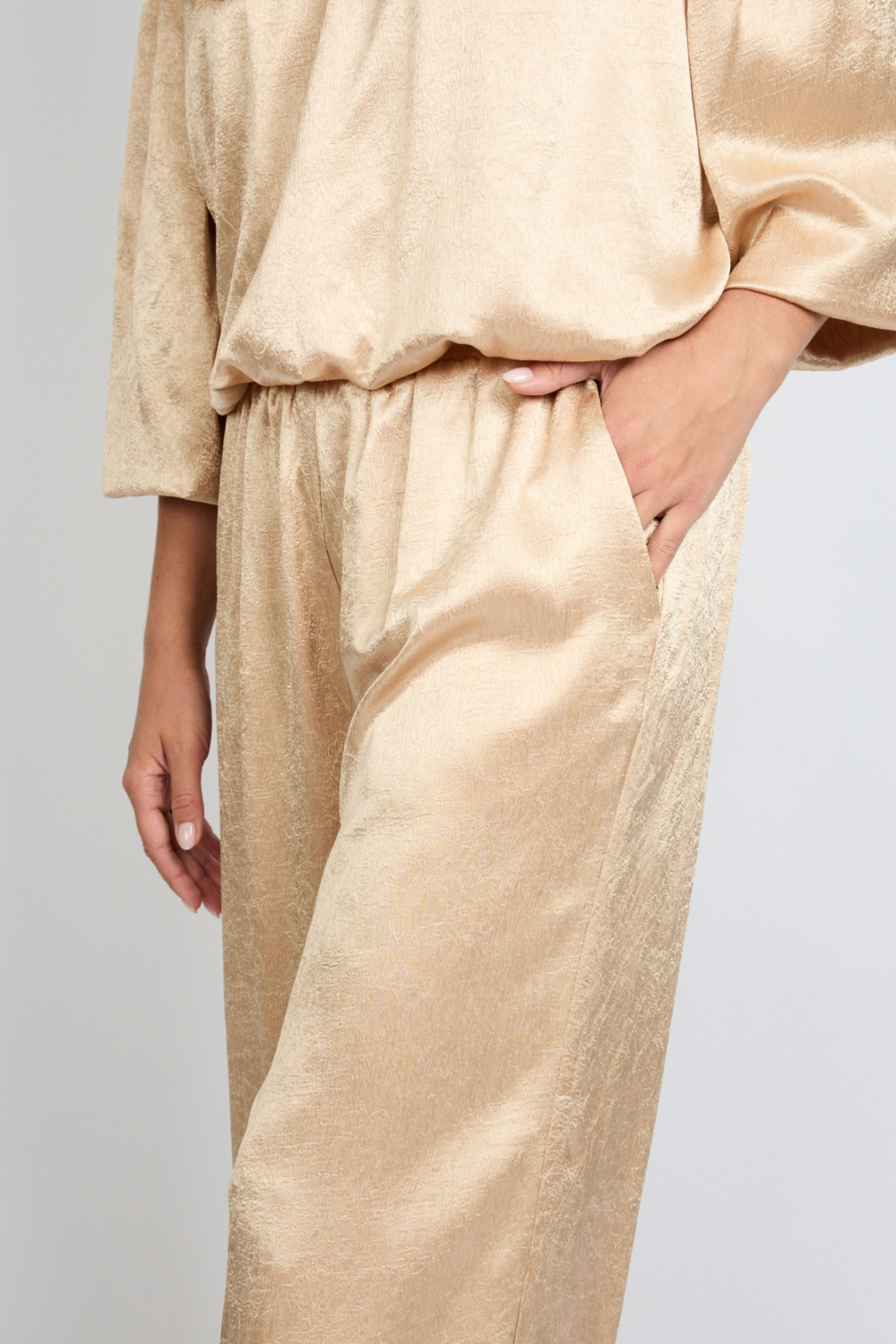 Deze sandkleurige broek van Fluresk geeft jouw casual garderobe een frisse touch. Gemaakt van 100% polyester, heeft de broek een zacht glanzend patroon dat voor een elegant accent zorgt. De straight fit en de regular waist creëren een comfortabele pasvorm, terwijl de elastische boord rond de taille bijdraagt aan een soepel draagcomfort. Perfect voor de lente, biedt deze broek een luchtige, maar stijlvolle uitstraling. Dankzij het tijdloze design is deze Fluresk broek veelzijdig te combineren. Of je nu een ontspannen dag doorbrengt met vrienden of een informele werkafspraak hebt, deze broek past zich gemakkelijk aan de situatie aan. Combineer hem met een elegante blouse voor een verfijnde look of kies een casual top voor een meer ontspannen vibe. De normale lengte maakt het eenvoudig om dit kledingstuk met verschillende soorten schoenen te dragen, van sandalen tot sneakers.