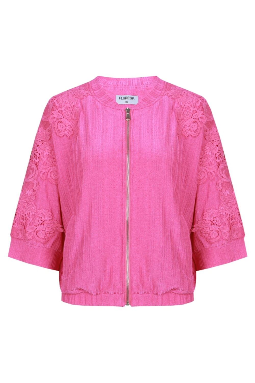 Met deze opvallende jas van Fluresk voeg je een stijlvolle en speelse touch toe aan je zomergarderobe. De korte lengte en ronde hals maken het tot een veelzijdig kledingstuk dat past bij diverse informele gelegenheden. Ideaal voor een dagje uit met vrienden of een ontspannen avondwandeling. De jas is vervaardigd uit een comfortabele mix van 93% polyester en 7% elastan, wat zorgt voor een lichte en ademende ervaring. De 3/4 mouwen bieden een luchtige pasvorm en de geborduurde details op de schouders geven het geheel een elegante uitstraling. Het felle roze van deze jas, gecombineerd met de subtiele ribstructuur, maakt het tot een echte blikvanger. De handige steekzakken en ritssluiting dragen bij aan zowel het gemak als de functionaliteit van de jas. Door de regular fit kun je deze jas makkelijk over een casual top dragen, zoals getoond. Of je nu naar een zomers festival gaat of een gezellige barbecue, deze jas van Fluresk zorgt ervoor dat je altijd in stijl verschijnt. Meer informatie: De totale lengte is 50 cm bij maat 36.