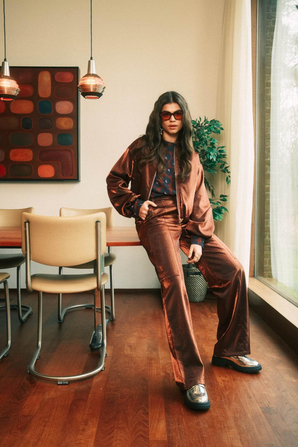 Fluresk koperen dames jas