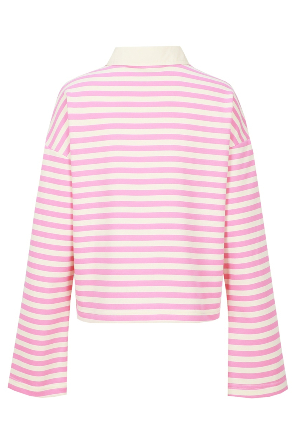 De Fluresk oversized sweater is een opvallende keuze voor je voorjaarsgarderobe. Gemaakt van een comfortabele mix van 70% katoen en 30% polyester, biedt deze sweater een zachte en ademende ervaring die ideaal is voor de lente. De sweater kenmerkt zich door een speelse streepjesprint in roze en crème, wat het een frisse en veelzijdige uitstraling geeft. De puntkraag met knoopsluiting voegt een subtiele, klassieke touch toe aan het casual ontwerp, terwijl de lange mouwen zorgen voor extra comfort. Dankzij de korte lengte en oversized pasvorm is deze Fluresk sweater perfect te combineren met een hoge taille broek of rok voor een ontspannen dagje uit of een informele bijeenkomst. De luchtige stijl maakt het een uitstekende keuze voor een casual lunch met vrienden of een dagje shoppen. Met zijn unieke patroon en relaxed design is deze sweater een verrijking voor elke kledingkast, die gemakkelijk te stylen is voor verschillende gelegenheden.