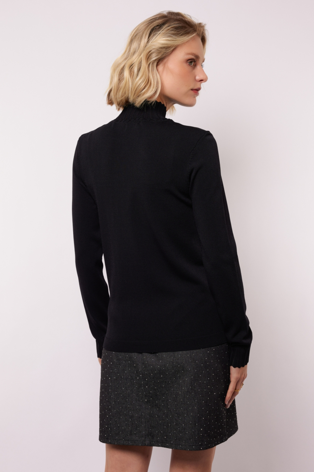 De lange mouwen en het normale silhouet maken deze sweater ideaal voor casual gelegenheden. Combineer hem met een stijlvolle rok voor een avondje uit of draag hem met je favoriete jeans voor een ontspannen dagje in de stad. Het kledingstuk komt in een subtiele zwarte kleur, perfect voor moeiteloze combinaties met verschillende accessoires. Of je nu op weg bent naar een koffiedate of een dag op kantoor doorbrengt, deze sweater van Fluresk biedt je een stijlvolle keuze die zowel praktisch als modieus is.