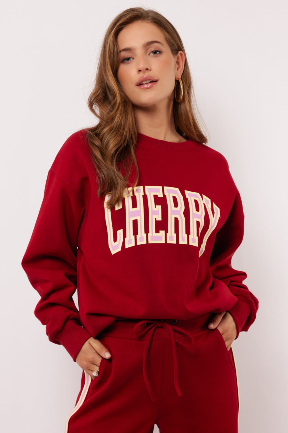 De Fluresk sweater in een diepe rhubarb tint brengt zowel stijl als comfort voor dames. Met zijn casual uitstraling is deze trui ideaal voor de herfst. De regular fit en de ronde hals zorgen ervoor dat je hem makkelijk met andere kledingstukken kunt combineren. De opvallende tekst "CHERRY" in een contrasterende kleur geeft een speelse touch aan de sweater, waardoor hij net dat beetje extra flair krijgt. Gemaakt van een blend van 55% polyester, 40% katoen en 5% elastan, biedt de sweater een fijne balans tussen zachtheid en stevigheid. De lange mouwen zorgen ervoor dat je warm blijft tijdens koelere dagen, terwijl de normale lengte ervoor zorgt dat hij perfect past bij een jeans of comfortabele broek. Ideaal voor een dagelijkse casual look, een ontspannen weekend thuis, of een gezellige avond met vrienden. Deze Fluresk sweater is een must voor je herfstgarderobe.