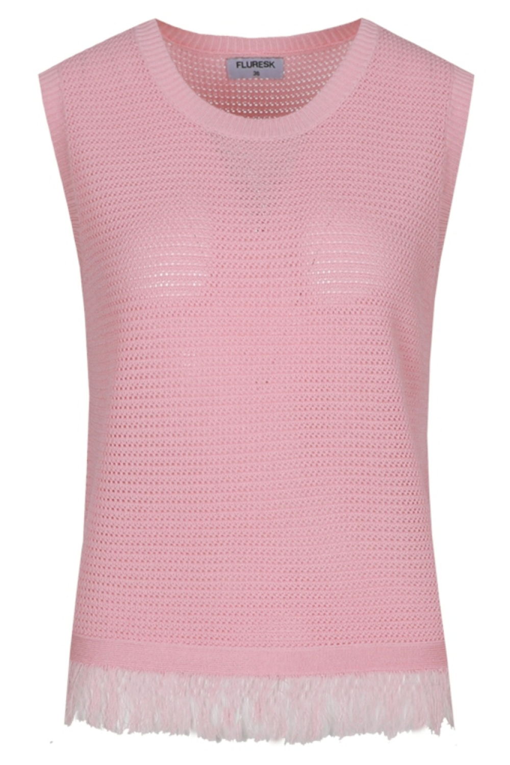Deze zomerse top van Fluresk, met zijn luchtige knitwear-stijl, is een ideale aanvulling voor je garderobe. De mouwloze constructie en het gebruik van 60% polyester en 40% viscose geven de top een soepelvallende en comfortabele pasvorm. De lichtroze tint gecombineerd met een ronde hals en een speelse fringe-afwerking maakt het een veelzijdig kledingstuk dat past bij diverse outfits. Of je nu een ontspannende dag in de zon hebt gepland of je klaar maakt voor een casual bijeenkomst, deze top weet zich moeiteloos aan te passen aan de situatie. De slim fit pasvorm accentueert subtiel je silhouet, terwijl de normale lengte ervoor zorgt dat het gemakkelijk te combineren is met zowel broeken als rokken. Dankzij het ademende materiaal en het mouwloze ontwerp is de Fluresk top perfect voor warme zomerdagen. Draag hem met een vrolijke, lichte broek voor een frisse en modieuze look, of kies voor een strakgesneden short voor een relaxte, trendy uitstraling. Deze veelzijdige top laat je stralen in elke zomerse setting.
