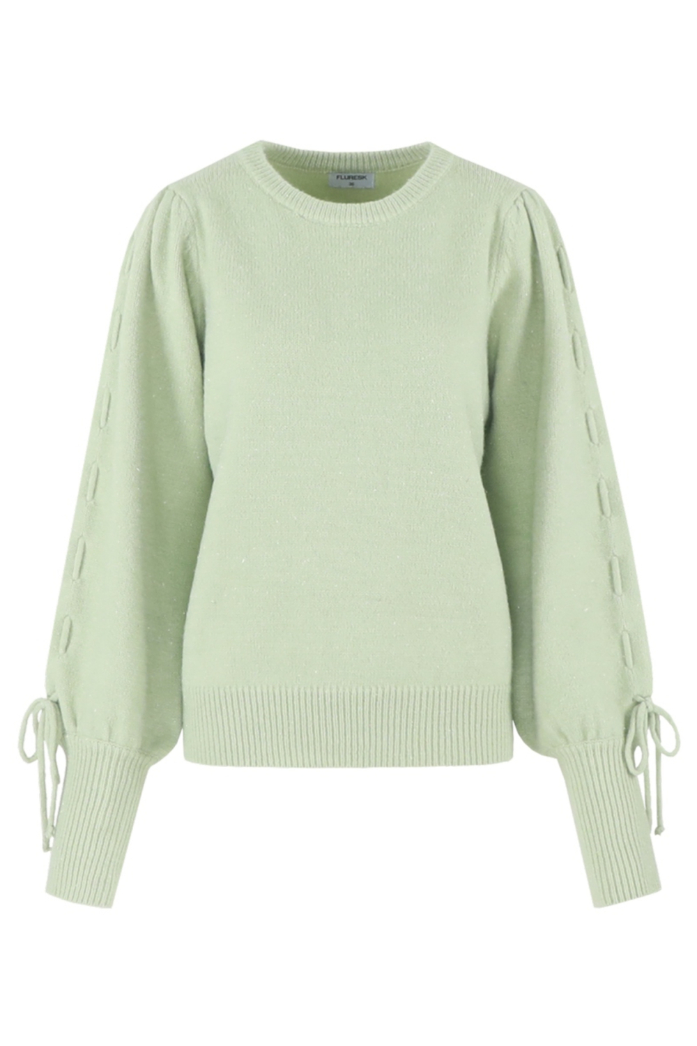 Fluresk groene dames trui | Close upFluresk groene dames trui | VooraanzichtFluresk groene dames trui | Model achteraanzichtFluresk groene dames trui | AchteraanzichtFluresk groene dames trui | Model achteraanzicht
