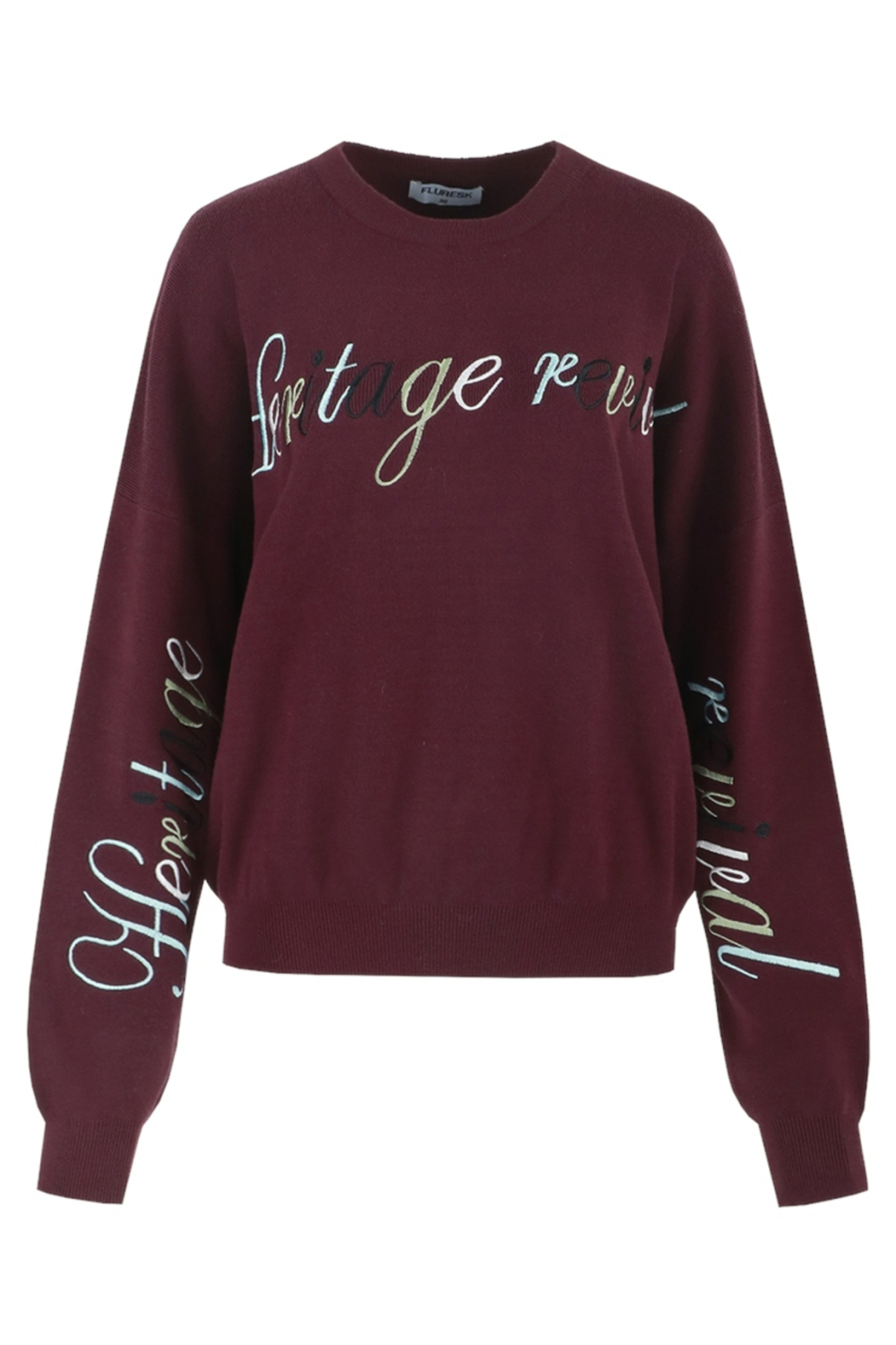 Deze elegante damestrui van Fluresk combineert comfort en stijl op een bijzonder fraaie manier. De trui in een diepe donkere paarse tint is gemaakt van een hoogwaardige mix van 50% viscose, 25% polyamide en 25% polyester, wat zorgt voor een aangenaam zachte stof. De ronde hals en lange mouwen geven de trui een klassieke uitstraling, terwijl het subtiele en kleurrijke tekstpatroon op de borst en mouwen een speelse touch biedt. Dankzij de regular fit pasvorm valt de trui soepel en comfortabel om je lichaam.