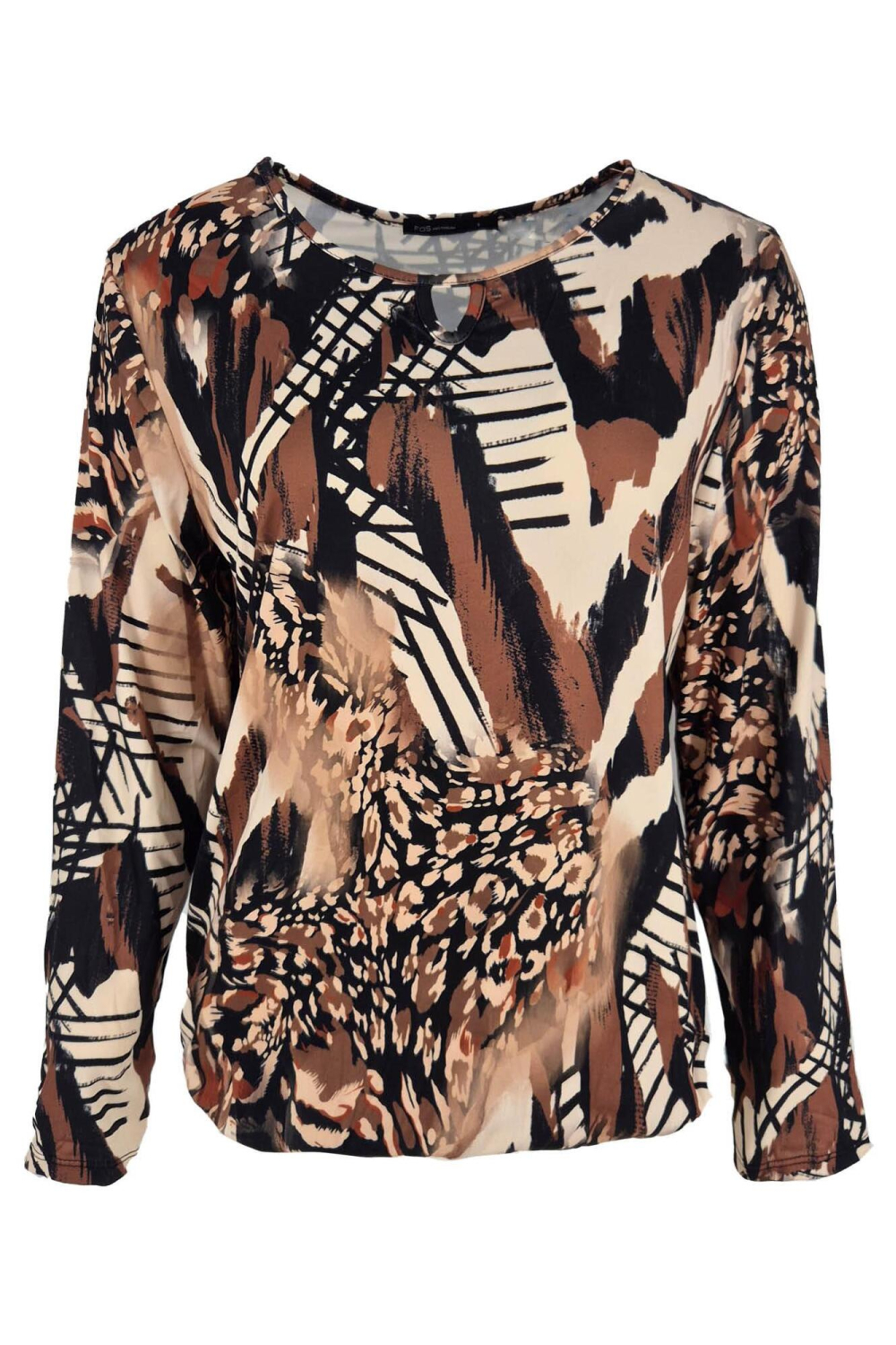 Dit grafische dames T-shirt van FOS Amsterdam is een veelzijdige aanwinst voor je garderobe. De combinatie van 60% polyester, 35% viscose en 5% elastan biedt een comfortabele pasvorm met voldoende stretch. Met zijn opvallende patroon in warme herfstkleuren en abstracte vormen, trek je met dit T-shirt op subtiele wijze de aandacht. De ronde hals en lange mouwen maken het geschikt voor de wintermaanden, terwijl de normale lengte voor een fijne casual stijl zorgt. Of je nu een dagje uit gaat of een informele werkbijeenkomst hebt, dit T-shirt past bij elke gelegenheid. Combineer het met een strakke jeans voor een moderne, dagelijkse look of draag het onder een effen blazer voor een wat meer verfijnde uitstraling. De casual stijl zorgt ervoor dat je dit shirt gemakkelijk kunt aanpassen aan verschillende situaties. Met zijn unieke ontwerp brengt dit FOS Amsterdam T-shirt een vleugje flair naar jouw wintergarderobe.