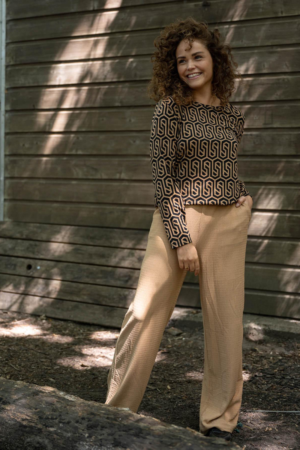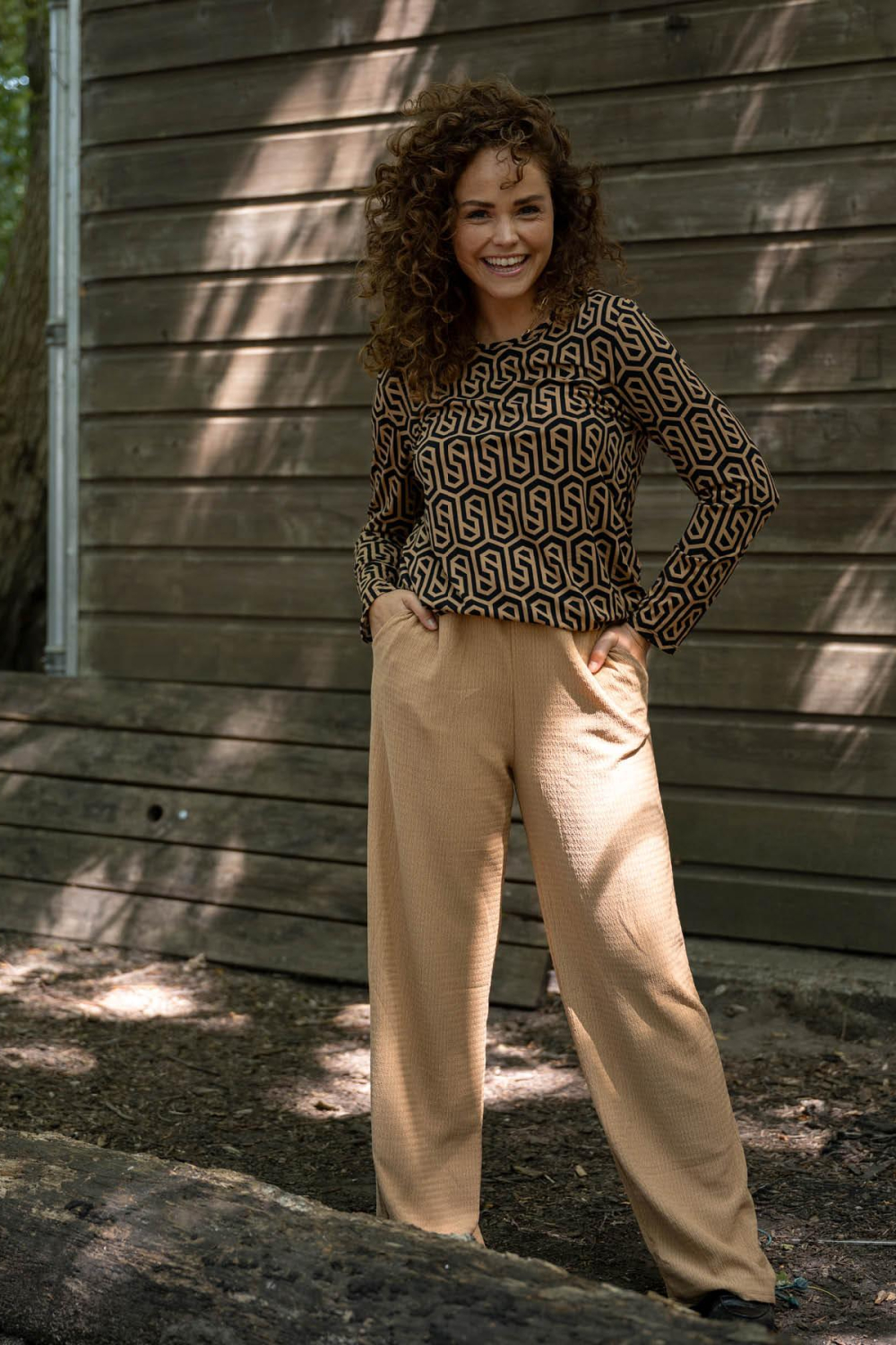 Dit casual dames T-shirt van FOS Amsterdam is een veelzijdige toevoeging aan je wintergarderobe. Met zijn grafische patroon in een subtiele camel tint, maakt het een gedurfd statement. De ronde hals en lange mouwen zorgen voor extra comfort en warmte in het koude seizoen. Met een regular fit biedt het een comfortabele pasvorm die beweging vrij laat, ideaal voor een ontspannen dag thuis of een casual uitje. Gemaakt van een zachte mix van viscose, polyester en elastan, biedt dit T-shirt ademend comfort voor dagelijks gebruik. Dankzij de normale lengte kun je het moeiteloos combineren met zowel jeans als nette broeken. Of je nu een dagje naar de stad gaat of een lunchafspraak hebt, dit T-shirt past perfect bij verschillende gelegenheden. Zijn stijlvolle print geeft een moderne twist aan je outfit zonder te overdrijven, terwijl de materiaalkeuze zorgt voor een aangenaam draagcomfort.