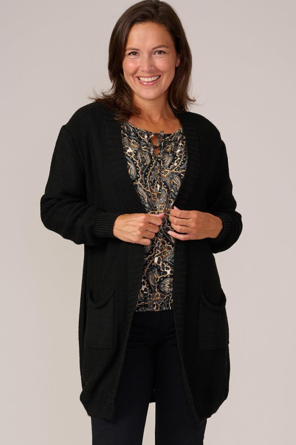 Dit stijlvolle zwarte vest van FOS Amsterdam is een veelzijdige aanwinst voor je wintergarderobe. Met een regular fit en een halflange lengte biedt het zowel comfort als een modieus silhouet. Het vest is gemaakt van 100% acryl en heeft een fijn gebreide structuur die zacht en warm aanvoelt, ideaal voor de koude maanden. Dankzij de handig geplaatste steekzakken kun je eenvoudig kleine spullen meenemen of je handen warm houden. Je kunt dit FOS Amsterdam vest gemakkelijk combineren met verschillende outfits. Of je nu een casual dagje uit plant of een meer formele setting hebt, dit vest past overal bij. Draag het over een blouse en een nette broek voor een stijlvolle werklook of over een shirt met jeans voor een ontspannen weekend. De lange mouwen en het ontbreken van een sluiting geven het vest een luchtige vrijheid die perfect is voor gelaagde looks.
