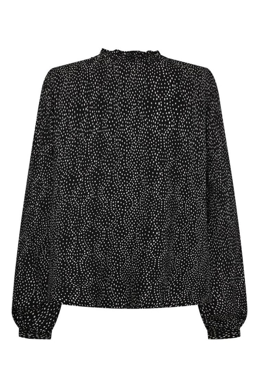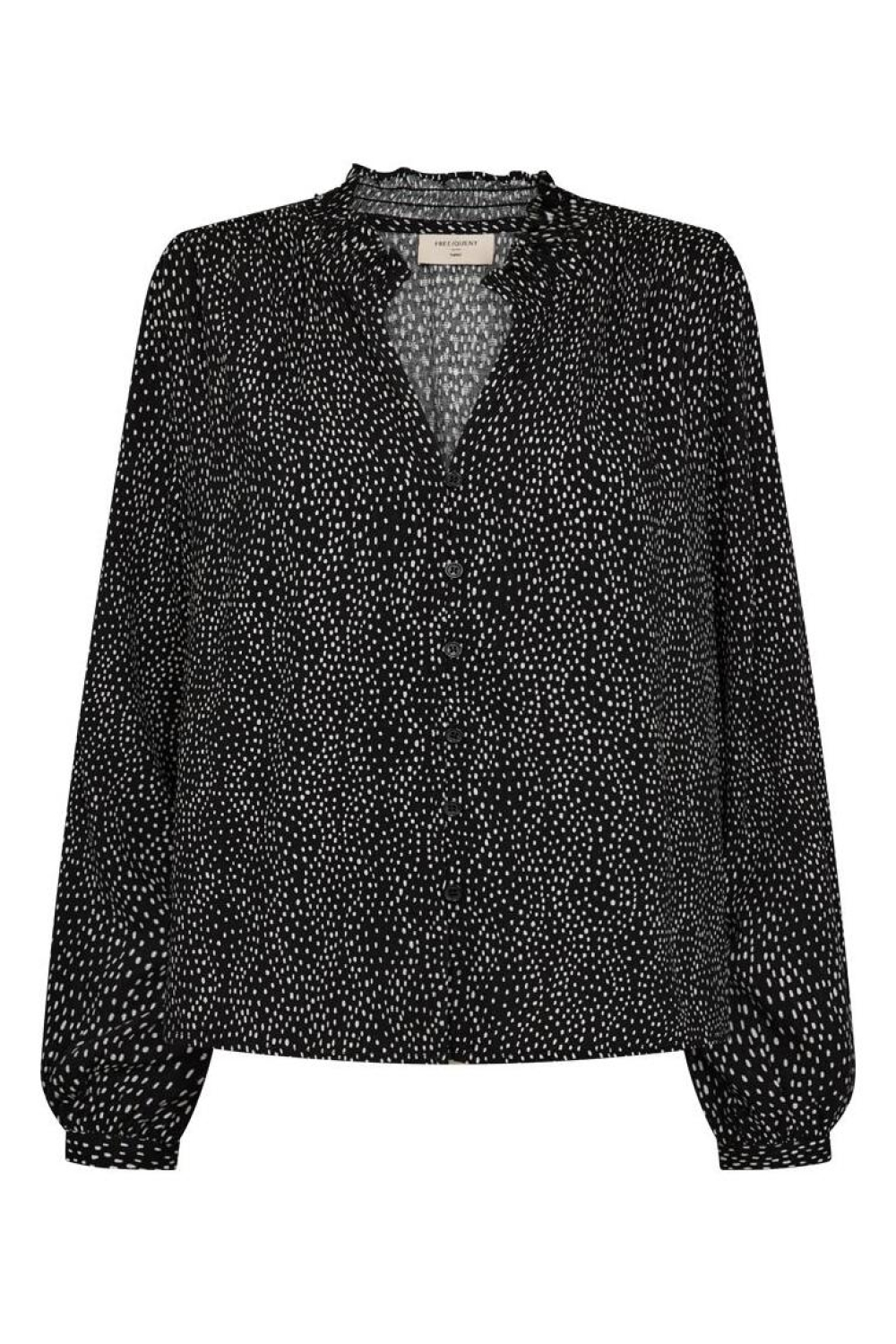 Deze casual zwarte blouse van Freequent, met de elegante ontwerpnaam BLACK W. MOONBEAM, is een stijlvolle toevoeging aan je wintergarderobe. Gemaakt van 100% Lenzing ecovero viscose, biedt deze blouse een duurzaam en comfortabel draagcomfort. De subtiele streep in combinatie met de speelse stippenprint geeft een eigentijdse twist aan een klassiek ontwerp. Met een regular fit en lange mouwen, biedt dit kledingstuk een goede balans tussen stijl en comfort, perfect voor dagelijks gebruik.