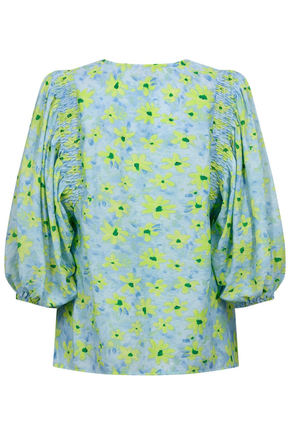 Deze kleurrijke blouse van Freequent is een veelzijdige toevoeging aan je lente garderobe. Gemaakt van een zachte mix van 65% viscose en 35% polyamide, biedt deze blouse een comfortabele pasvorm. Het opvallende bloemenpatroon in frisse groentinten op een zachte blauwe achtergrond geeft deze blouse een vrolijke en vrouwelijke uitstraling. Met een V-hals en 3/4 mouwen voegt het ontwerp subtiele elegantie toe, terwijl de geplooide details op de schouders een verfijnd accent geven. De Freequent blouse is ideaal voor casual gelegenheden. Door de normale lengte en de regular fit is het een geschikte keuze voor een dag op kantoor of een informele lunch met vrienden. Combineer het met een lichtblauwe jeans of een witte pantalon voor een frisse en moderne look. Of je nu gaat shoppen in de stad of een ontspannen weekend doorbrengt, deze blouse biedt comfortabele stijl die je moeiteloos kunt combineren met verschillende stukken in je garderobe.