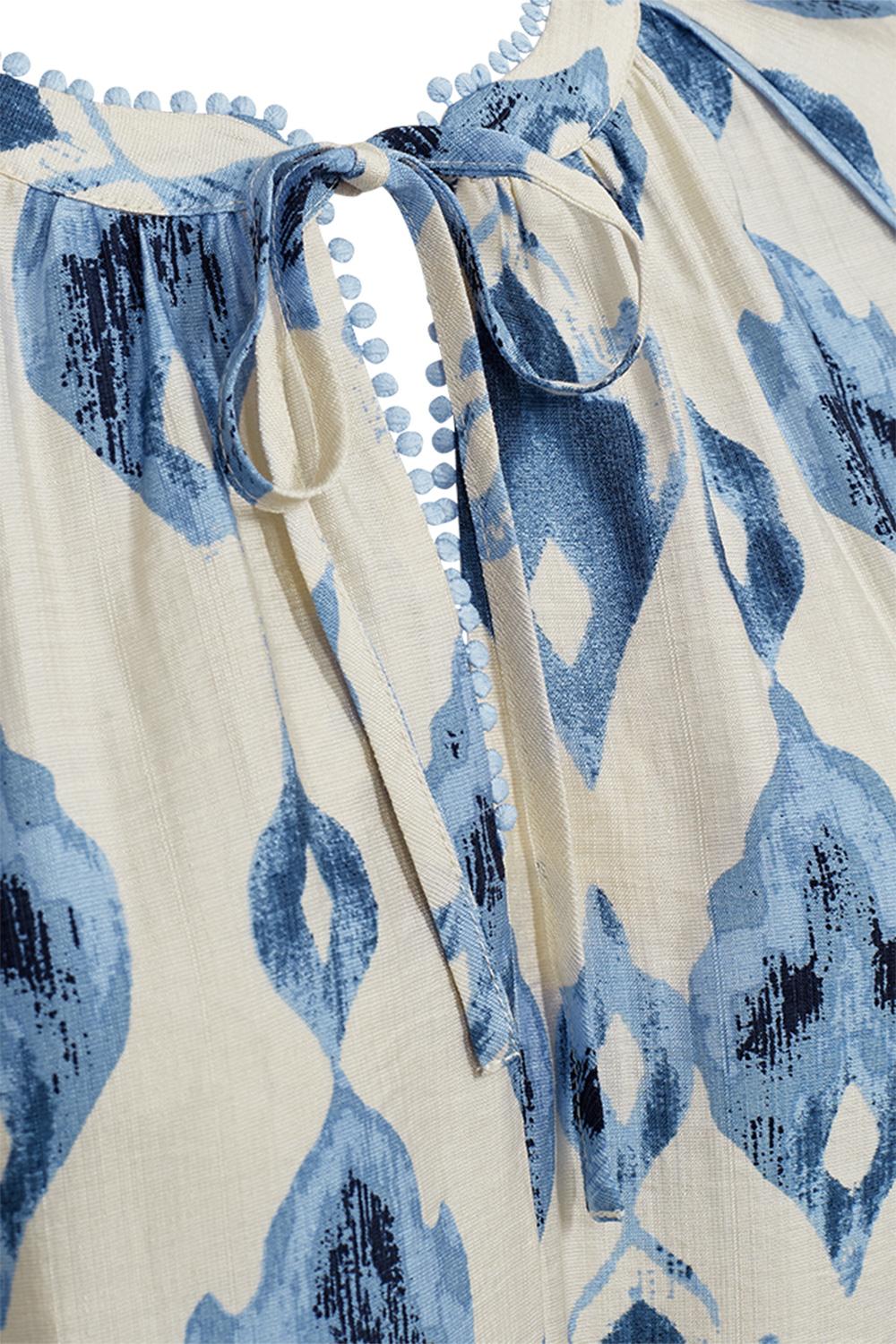 Deze stijlvolle blouse van Freequent valt op door het aantrekkelijke grafische patroon in blauwe tinten. De blouse heeft een regular fit en is gemaakt van een zachte mix van 83% viscose en 17% polyamide, wat zorgt voor een comfortabele pasvorm. Met een ronde hals en een elegant strikkoord biedt dit kledingstuk een subtiel speels detail. Ideaal voor de lente, geeft deze blouse een frisse touch aan je garderobe. Door het casual ontwerp kun je de Freequent blouse makkelijk combineren voor diverse gelegenheden. Draag hem bij een informele lunch met vrienden of tijdens een ontspannen dag op kantoor. De lange mouwen maken de blouse geschikt voor koelere lentedagen, terwijl de normale lengte en het losse silhouet bijdragen aan een ontspannen uitstraling. Met zijn veelzijdige design is deze blouse een waardevolle aanvulling op je dagelijkse outfits.