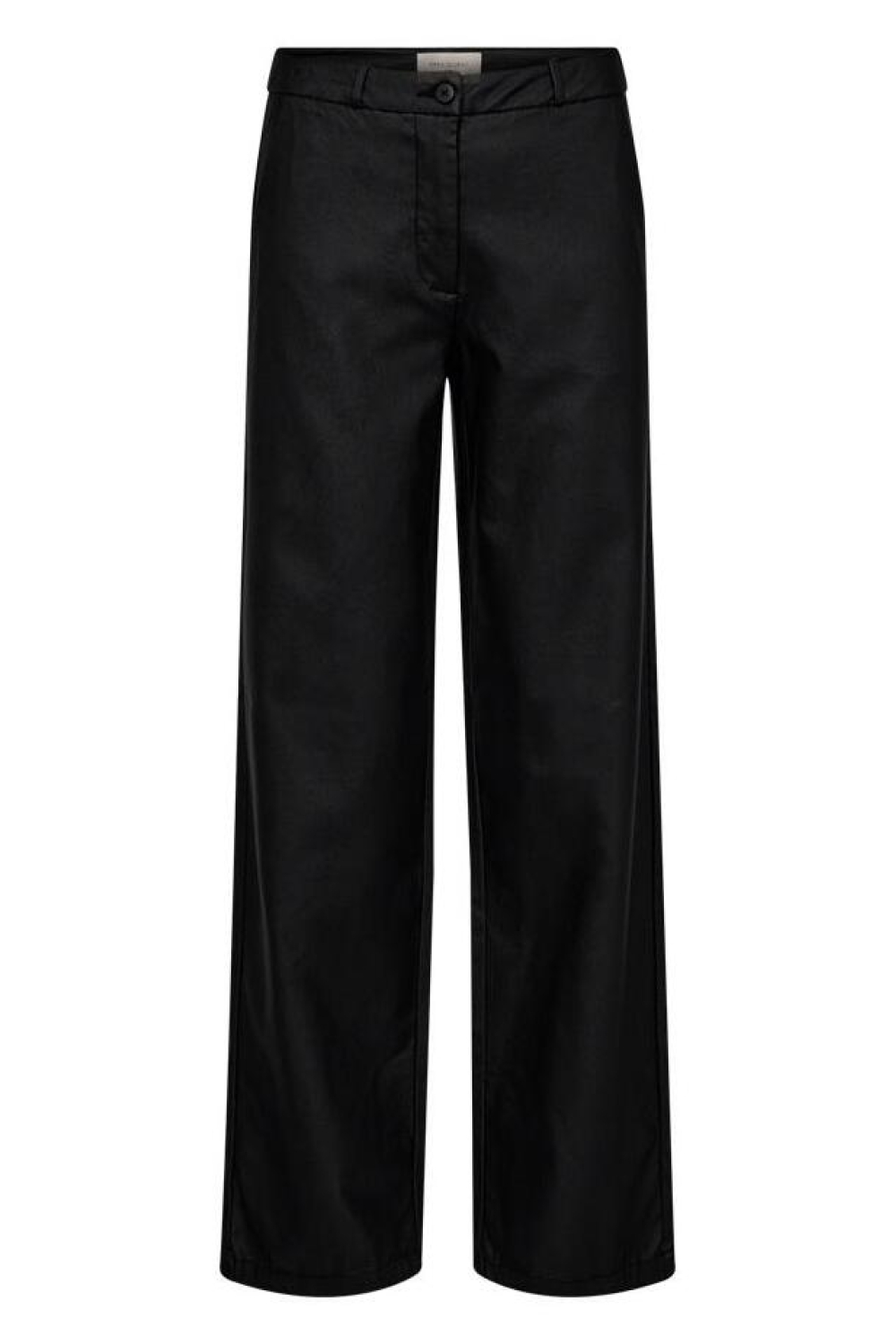 Deze zwarte broek van Freequent biedt een eigentijdse en veelzijdige keuze voor je wintergarderobe. Dankzij de straight fit pasvorm en de regular waist, zorgt de broek voor een comfortabele en flatterende look. Gemaakt van een hoogwaardige mix van viscose, polyamide en elastan, voel je een aangename soepelheid en lichte stretch. De gecoate afwerking geeft de broek een subtiele glans, waardoor het een modern randje krijgt dat je look moeiteloos naar een hoger niveau tilt.