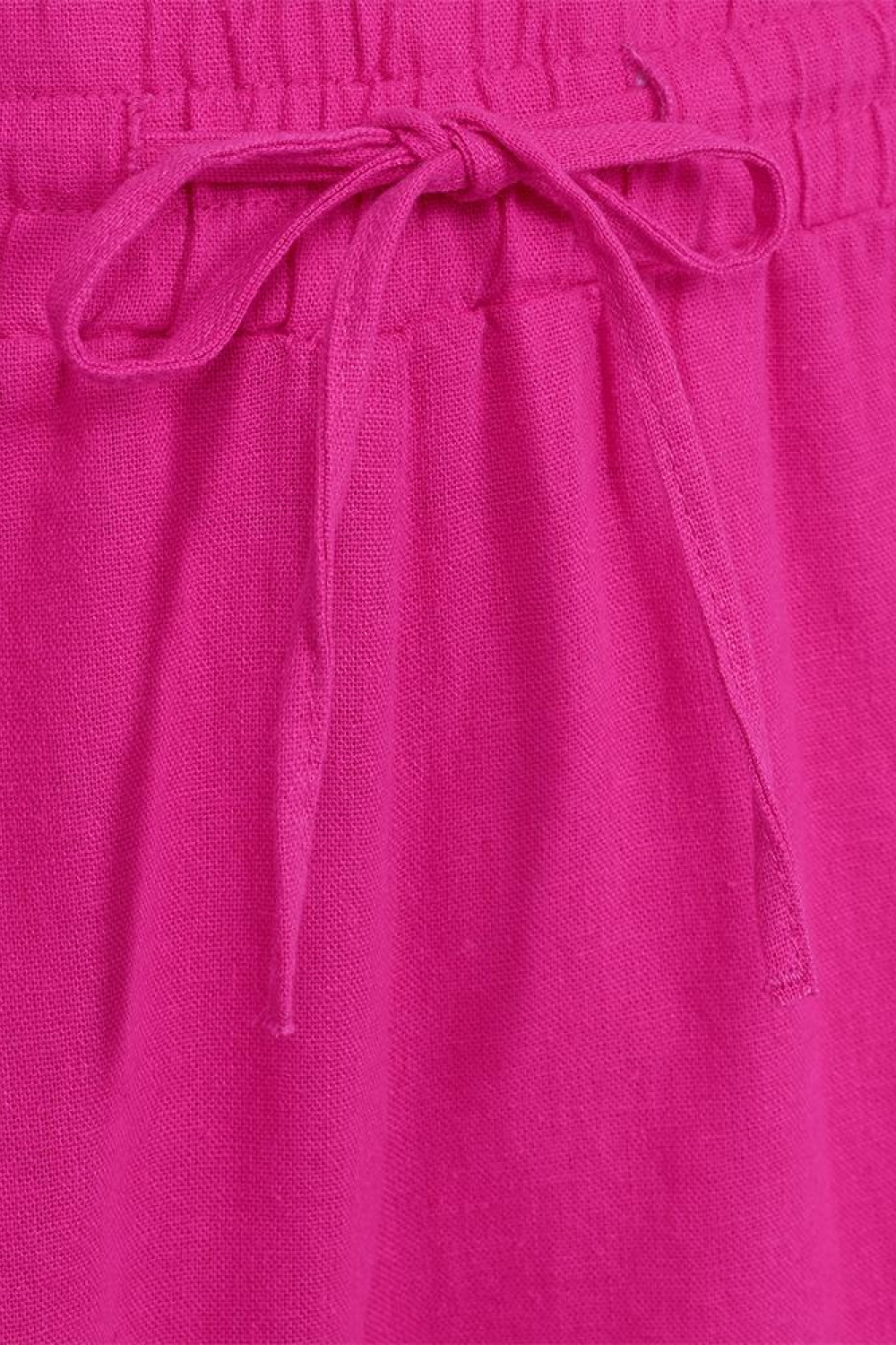Deze casual korte broek van Freequent in de opvallende kleur Fuchsia Purple is een veelzijdige toevoeging aan je zomergarderobe. Gemaakt van een luchtige mix van 55% linnen en 45% viscose, biedt deze broek comfort op warme dagen. De regular pasvorm en elastische tailleband met koordsluiting zorgen voor een ontspannen en praktische draagervaring. De subtiele gemêleerde stof voegt een speels detail toe, terwijl de steekzakken handig zijn voor kleine spullen. Het design is perfect voor diverse casual gelegenheden; ideaal voor een wandeling in het park of een ontspannen dag op het strand. Door de normale lengte en het stijlvolle ontwerp kun je de broek gemakkelijk combineren met een luchtige top of een eenvoudig T-shirt voor een moeiteloze, zomerse look. Deze Freequent korte broek biedt een fijne balans tussen stijl en comfort en is een geweldige keuze voor iedere zonnige dag.