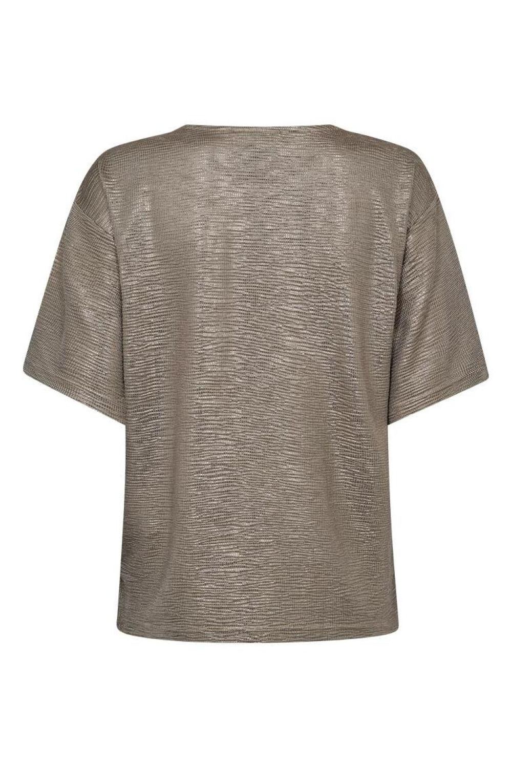 Dit dames T-shirt van Freequent in de kleur Desert Taupe is een elegante toevoeging voor je garderobe. De rijke glitterpatroon op de zachte polyester mix met elastaan biedt niet alleen een comfortabele fit, maar ook een subtiele glans. Met zijn ronde hals en korte mouwen heeft het T-shirt een moderne en toch tijdloze uitstraling die bij veel gelegenheden past. Of je nu een feestje hebt of gewoon een avondje uit gepland hebt, dit T-shirt zorgt voor een stijlvolle look.
