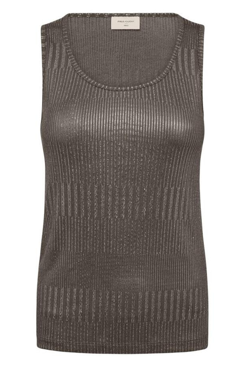 Deze elegante dames top van Freequent brengt een stijlvolle touch aan je dagelijks leven. Met een regular fit pasvorm en een ronde hals, biedt deze mouwloze top zowel comfort als veelzijdigheid. Het subtiele glitterpatroon geeft een vleugje glamour aan de meer kleurige morel tint, perfect voor het herfstseizoen. Gemaakt van 95% polyester en 5% elastan, voelt de stof zacht aan op de huid en biedt het een lichte stretch, zodat je de hele dag vrij kunt bewegen.