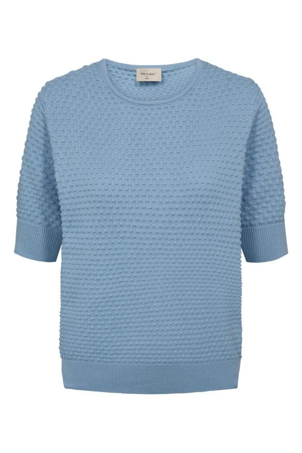 Deze elegante blauwe Freequent trui met structuurpatroon is een stijlvolle toevoeging aan jouw lente-garderobe. Gemaakt van 100% katoen, biedt deze trui niet alleen een comfortabele pasvorm maar ook een duurzame keuze. De ronde hals en de korte mouwen maken het geschikt voor diverse gelegenheden, van een relaxte middag in het park tot een informele lunchafspraak. Met zijn frisse Blue Bell kleur geeft het jouw outfit een subtiele doch onderscheidende uitstraling. De regular fit van deze Freequent trui zorgt ervoor dat het prettig draagt, terwijl het structuurpatroon een moderne twist geeft aan het klassieke knitwear design. Of je het nu combineert met een lichte jeans of een nette pantalon, deze trui brengt altijd een vleugje verfijning in je look. Het is een veelzijdig kledingstuk dat zowel modieus als comfortabel is, een perfecte match voor casual en semi-formele settings.