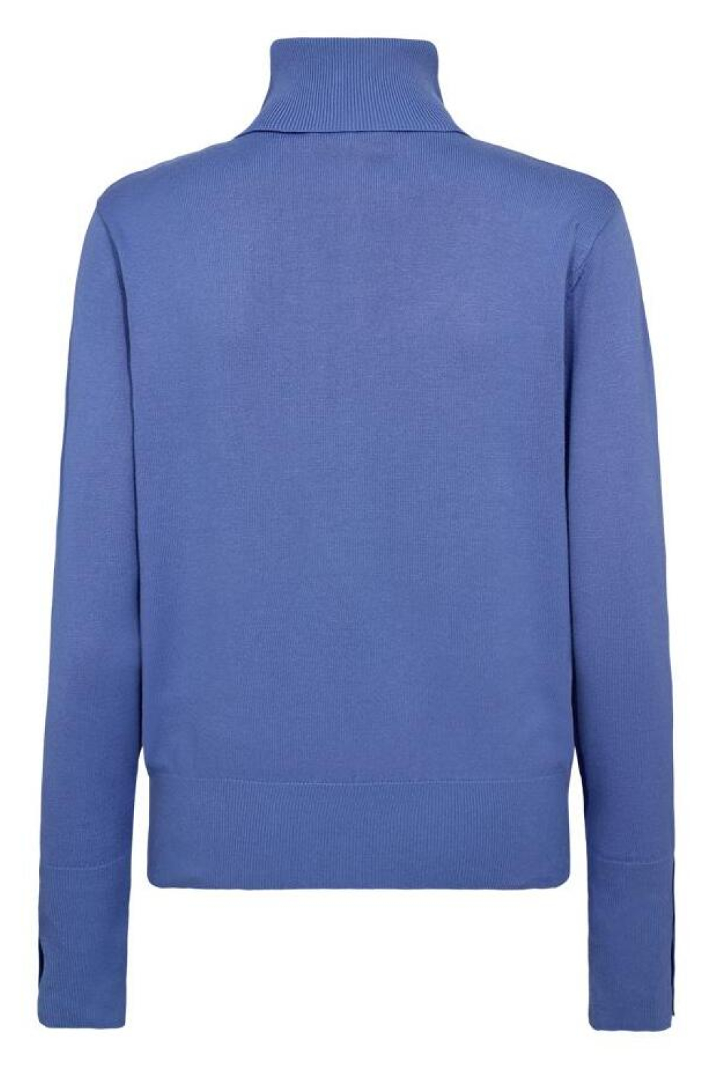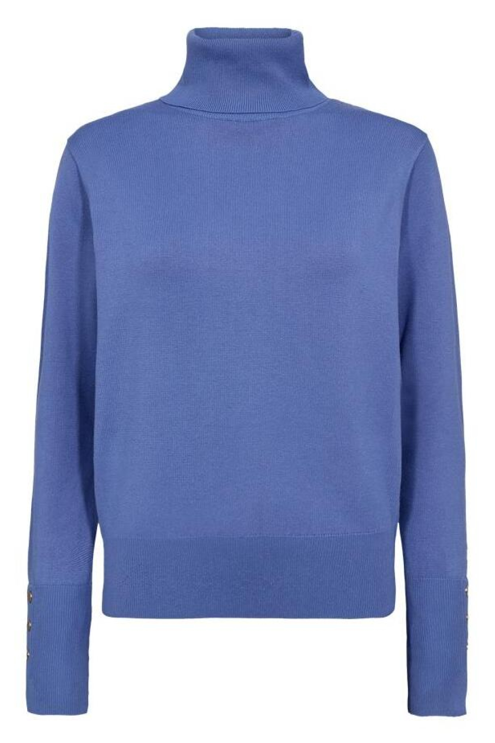 Deze Freequent trui in de kleur WEDGEWOOD is een stijlvolle toevoeging aan je herfstgarderobe. Met een regular fit pasvorm biedt de trui een comfortabel en fris gevoel. De colkraag voegt een modieuze touch toe en zorgt voor extra warmte op koelere dagen. De lange mouwen zijn voorzien van fijne details zoals de elegante knoopjes aan de zijkant, wat de trui een unieke uitstraling geeft. De trui is vervaardigd uit 82% viscose, 16% polyamide en 2% elastan, wat zorgt voor een zachte en elastische stof die prettig draagt.Deze damestrui is uitstekend geschikt voor zowel casual als meer formele gelegenheden. Combineer hem met een nette broek voor een professionele look of kies voor een meer relaxte uitstraling met je favoriete jeans. De normale lengte maakt het eenvoudig om de trui met verschillende kledingstukken te combineren, waardoor je er in elke situatie stijlvol uitziet. Of je nu een dag op kantoor doorbrengt of een avondje uit plant, deze Freequent trui zorgt ervoor dat je altijd goed voor de dag komt.