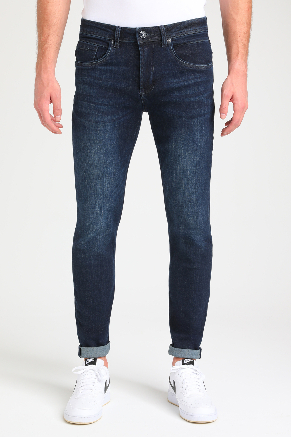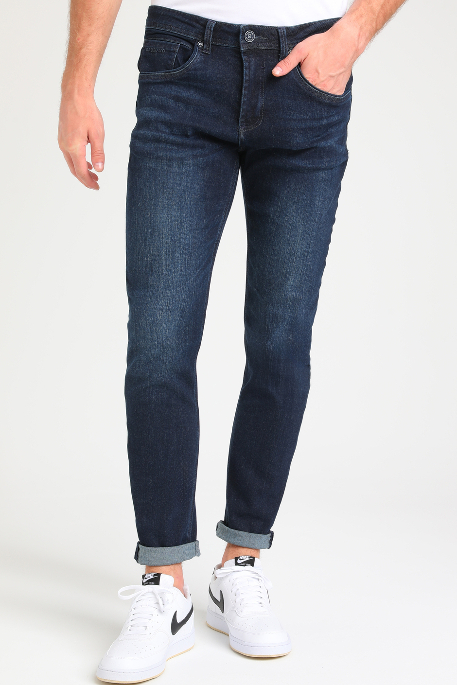 Deze Gabbiano jeans in een stijlvolle donkerblauwe tint is een uitstekende keuze voor je wintergarderobe. De slim fit pasvorm, gecombineerd met een regular waist, geeft je een moderne look zonder in te leveren op comfort. De stonewash afwerking zorgt voor een subtiele, tijdloze uitstraling die gemakkelijk te combineren is met zowel casual als meer formele outfits. Door de samenstelling van 88% katoen, 10% gerecycled PET en 2% lycra, voelt de stof zacht aan en biedt deze een lichte stretch voor extra bewegingsvrijheid. De jeans heeft een klassieke knoop- en ritssluiting, en is voorzien van vijf handige zakken. De duurzaam geproduceerde denim maakt deze broeken niet alleen stijlvol, maar ook een verantwoordelijke keuze. Of je nu een dag op kantoor doorbrengt of een informele avond met vrienden hebt, deze jeans zijn de perfecte match. Draag ze met sneakers voor een casual uitstraling of combineer met nette schoenen voor een meer verfijnde look. De veelzijdigheid en het comfort van deze jeans maken ze tot een essentiële aanvulling op elke heren-garderobe.