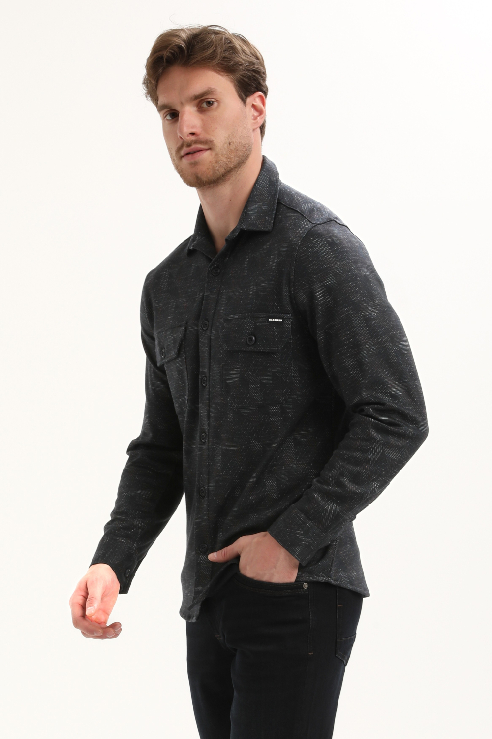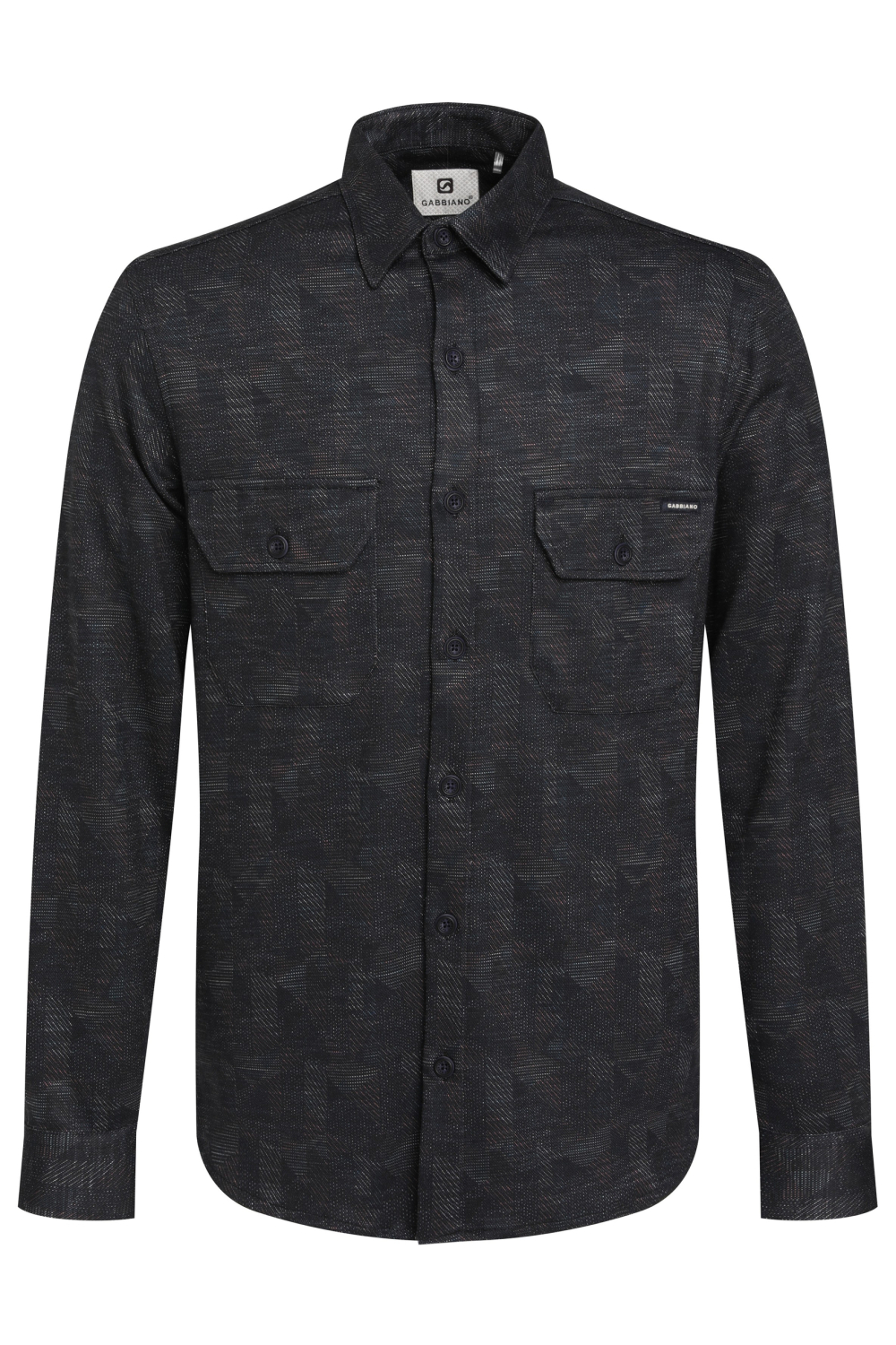 Dit casual navy overhemd van Gabbiano is een stijlvolle aanwinst voor jouw garderobe. Met het grafische patroon en de regular fit pasvorm biedt dit overhemd zowel comfort als een moderne uitstraling. De lange mouwen en de klassieke puntkraag zorgen voor een tijdloze look, waardoor het geschikt is voor diverse gelegenheden. De klepzakken aan de voorzijde voegen een praktische en stijlvolle touch toe aan het geheel. Gemaakt van een hoogwaardige mix van 80% katoen, 18% polyester en 2% lycra, biedt dit overhemd een aangename draagervaring. De veelzijdigheid van dit Gabbiano overhemd maakt het een goede match voor zowel casual als meer formele settings. Combineer het bijvoorbeeld met een denim jeans voor een ontspannen uitstraling, of draag het onder een nette blazer voor een meer zakelijke look. De subtiele navy tint en het unieke patroon zorgen ervoor dat je er altijd verzorgd uitziet, of je nu naar kantoor gaat of een avondje uit gepland hebt. Dit is een stijlvol stuk dat niet in jouw wintergarderobe mag ontbreken.