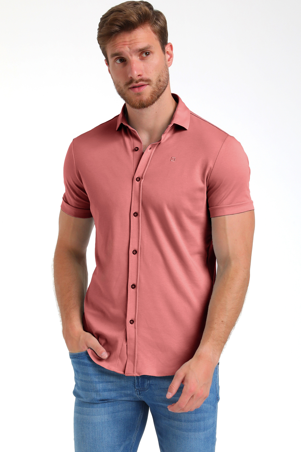 Dit casual Gabbiano overhemd in de kleur Sunset Red is een geweldige toevoeging aan je zomergarderobe. Met zijn regular fit pasvorm en korte mouwen biedt het overhemd een perfecte balans tussen stijl en comfort voor de warme dagen. De puntkraag en knoopsluiting geven het een klassieke uitstraling, terwijl de zachte stof van 60% katoen, 37% polyester en 3% elastan zorgt voor een fijne stretch en een gemakkelijk draagcomfort. Het Gabbiano overhemd is veelzijdig te combineren. Ideaal voor een zomerse barbecue of een ontspannen dagje uit, het frisse ontwerp maakt het een uitstekende keuze voor diverse gelegenheden. Draag het met een lichte jeans voor een casual look of combineer het met een nette broek voor een iets formelere setting. De subtiele details, zoals de nette afwerking van de manchetten en het kleine logo op de borst, maken dit overhemd tot een stijlvolle en tijdloze keuze voor elke garderobe.