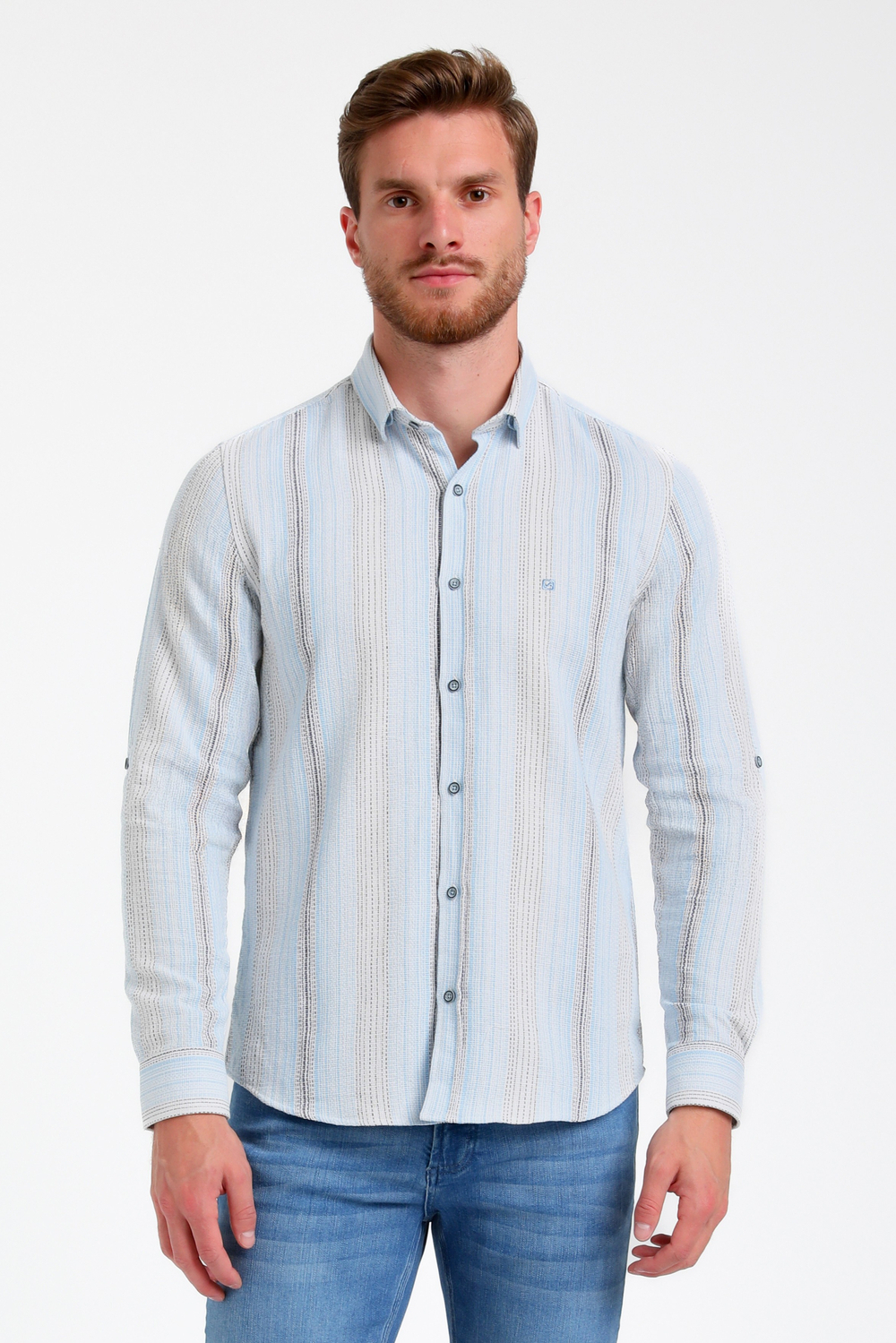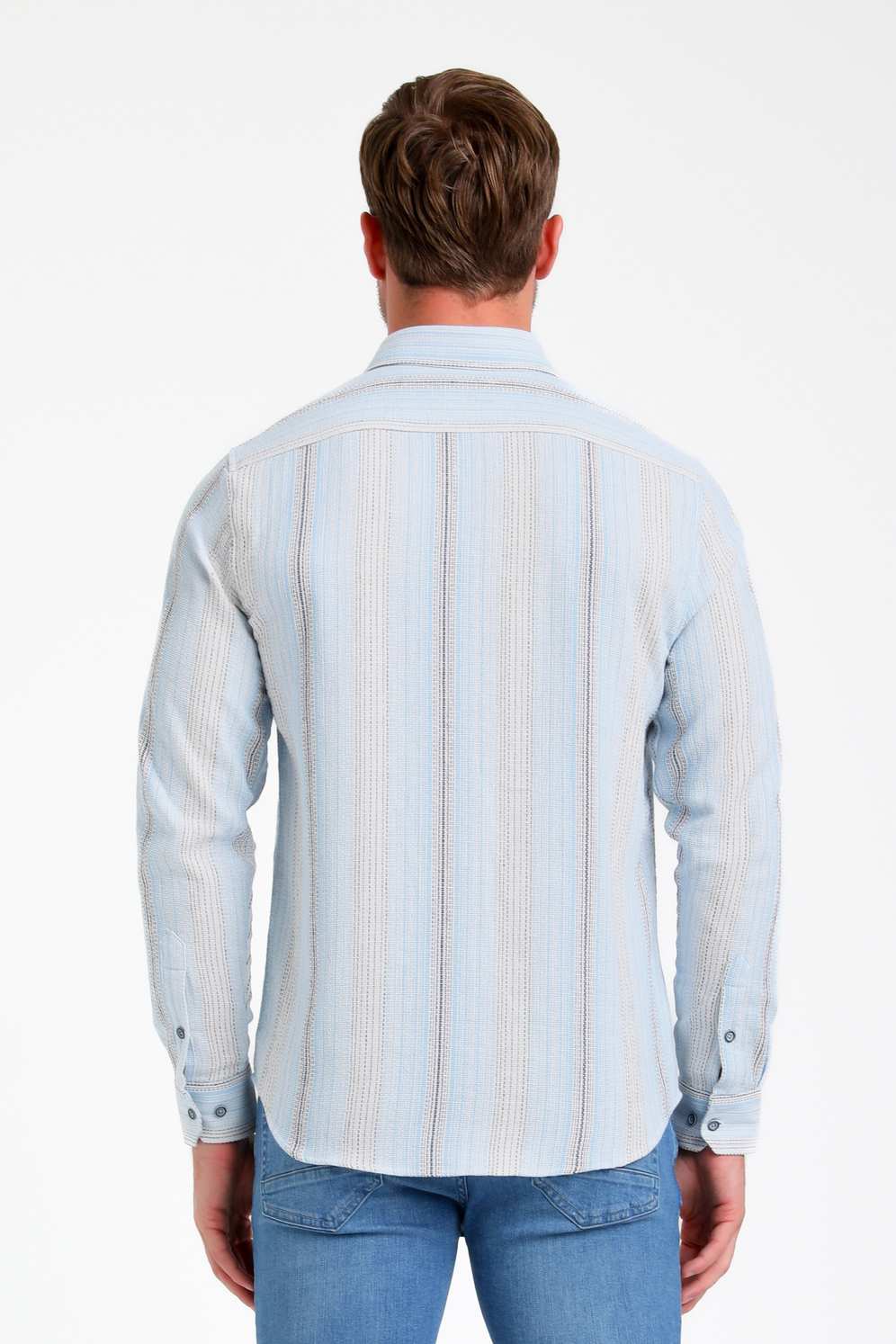 Gabbiano blauwe heren overhemd | Model vooraanzichtGabbiano blauwe heren overhemd | Model achteraanzichtGabbiano blauwe heren overhemd | Unique Selling PointGabbiano blauwe heren overhemd | KleurstaalGabbiano blauwe heren overhemd | VooraanzichtGabbiano blauwe heren overhemd | Model zijaanzichtGabbiano blauwe heren overhemd | Close up