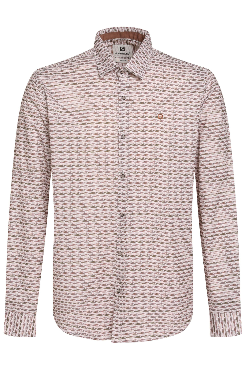 Dit Gabbiano overhemd voor heren brengt een stijlvolle urban uitstraling naar je garderobe. Met een regular fit en een grafisch patroon in de kleur 5701 clay, biedt het zowel comfort als een moderne look. De samenstelling van 97% katoen en 3% elastaan zorgt voor een aangename stof die je moeiteloos de hele dag draagt. De lange mouwen en de puntkraag geven dit overhemd een klassieke toets, terwijl de knoopsluiting zorgt voor een verfijnd geheel. Dit veelzijdige Gabbiano overhemd is perfect voor zowel casual als meer formele gelegenheden in het herfstseizoen. Combineer het met een donkere jeans voor een stijlvolle dagelijkse look of draag het onder een blazer voor een zakelijke bijeenkomst. Het tijdloze design maakt het eenvoudig te combineren met diverse kledingstukken, waardoor je altijd goed voor de dag komt. De normale lengte zorgt ervoor dat het overhemd zowel in als over de broek gedragen kan worden, afhankelijk van de gelegenheid.