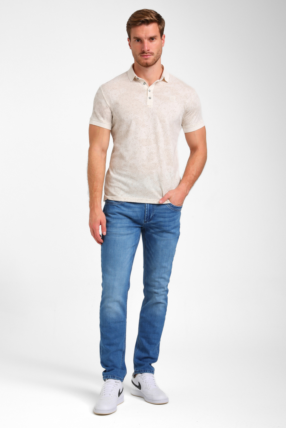 Deze casual zandkleurige polo van Gabbiano is een uitstekende keuze voor de zomer. Gemaakt van 100% katoen, biedt dit luchtige kledingstuk comfort tijdens warme dagen. De polo heeft een grafisch patroon dat subtiel opvalt en een stijlvolle touch toevoegt aan je outfit. De ribkraag en de knoopsluiting zorgen voor een klassieke uitstraling, waardoor deze polo zich moeiteloos aanpast aan zowel een ontspannen als een nettere look. Deze herenpolo met korte mouwen en een regular fit is ideaal voor alledaags gebruik. Draag hem met een jeans voor een casual dagje uit of combineer hem met een nette broek voor een informele werkdag. Het tijdloze ontwerp en de normale lengte maken het een veelzijdig kledingstuk dat goed van pas komt bij diverse gelegenheden. Of je nu op een zomerse barbecue bent of een wandeling maakt, deze Gabbiano polo is een betrouwbare keuze die stijl en eenvoud uitstraalt.
