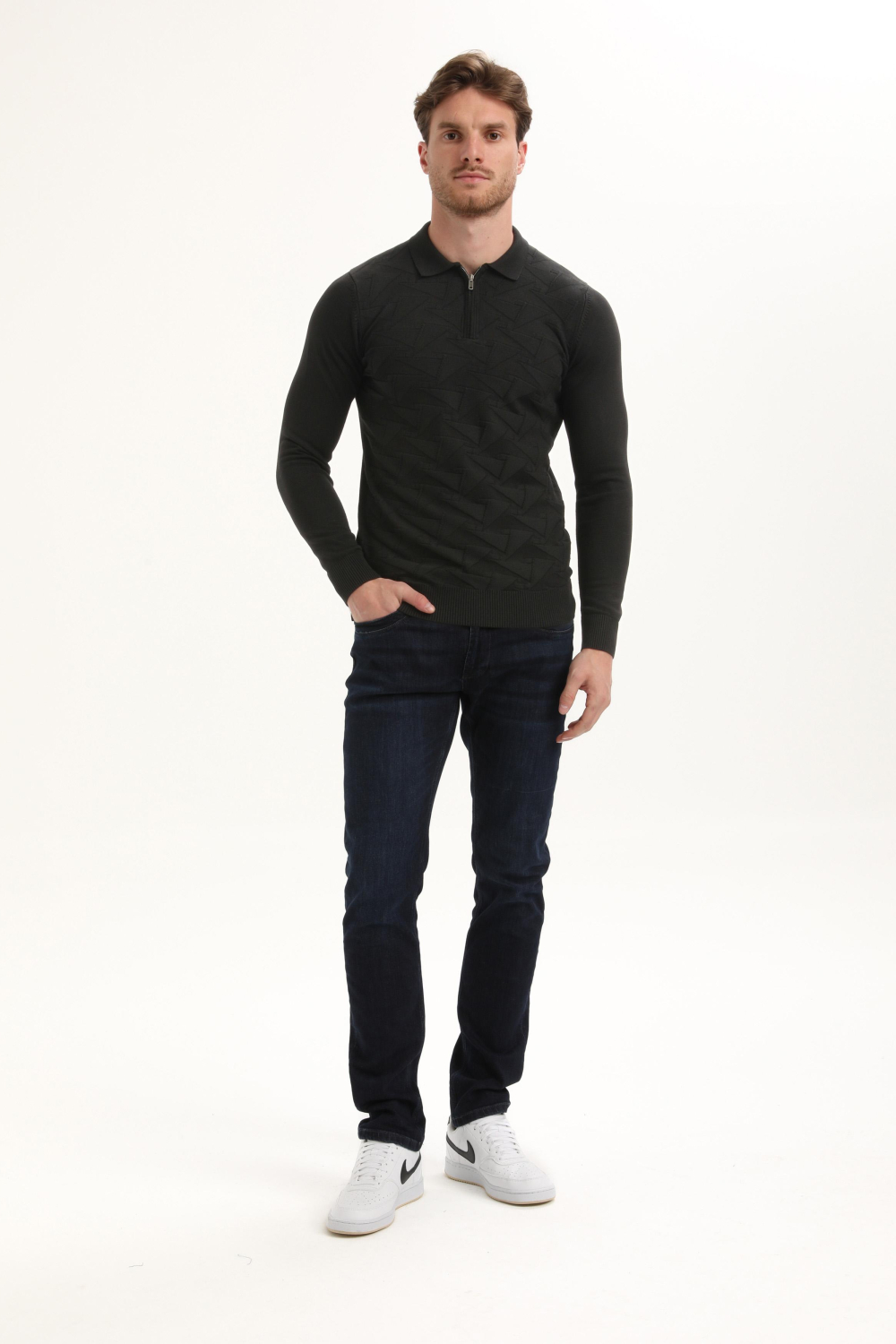 Deze stijlvolle herenpolo van Gabbiano is een perfecte toevoeging aan je herfstgarderobe. Met zijn unieke structuurpatroon in de kleur zwart, is deze polo een veelzijdig kledingstuk dat zowel elegant als casual gedragen kan worden. Uitgevoerd in een comfortabele mix van 70% viscose en 30% polyelit, voelt de stof zacht aan op je huid en biedt het draaggemak gedurende de dag. De regular pasvorm en normale lengte zorgen voor een prettige, ontspannen fit.