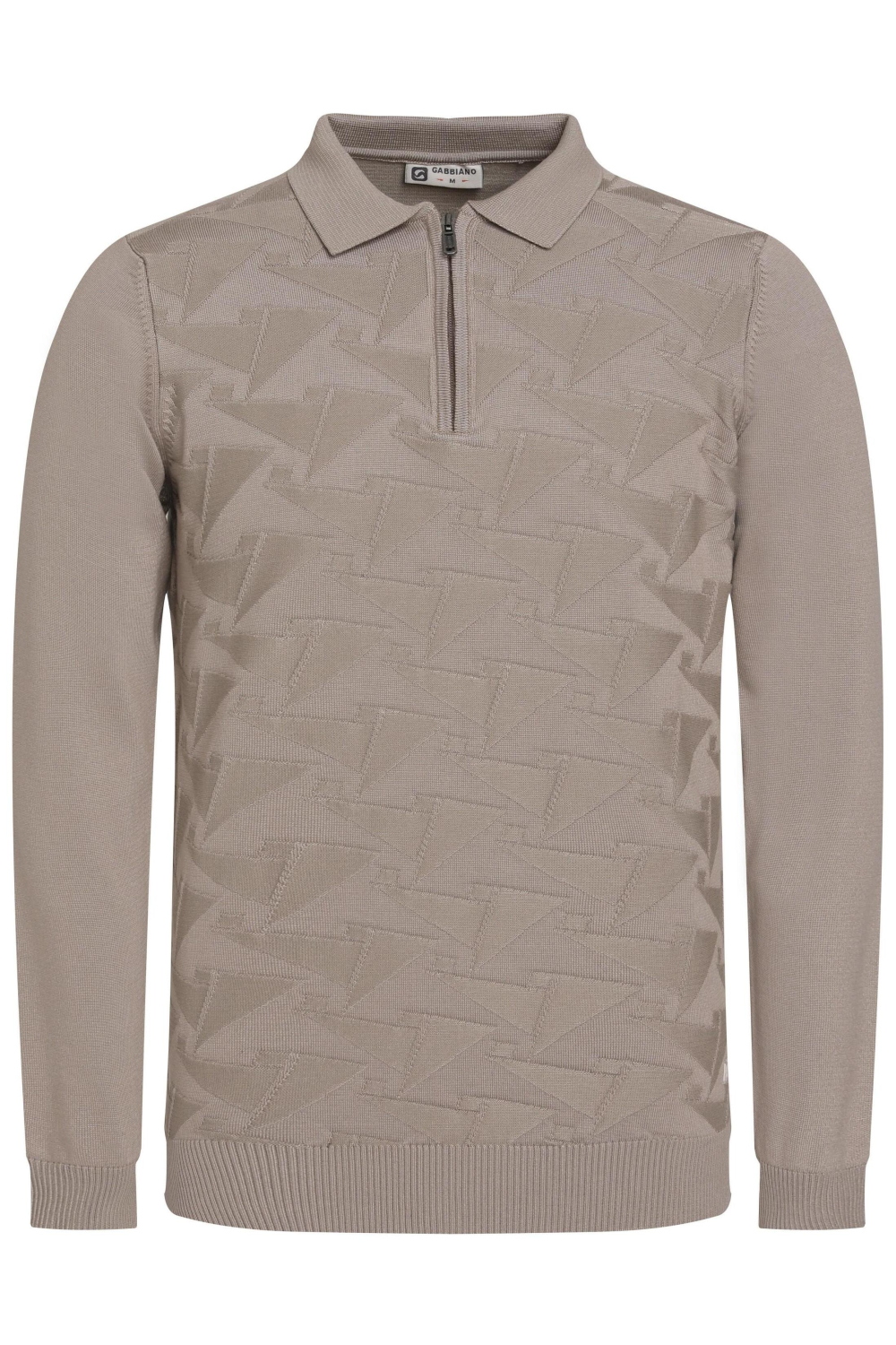 Deze taupekleurige knitwear polo van Gabbiano is een stijlvolle keuze voor het herfstseizoen. De structuur van de stof geeft het een uniek en modern karakter, met een subtiele geometrische patroon dat meteen opvalt. De rib kraag en de ritsluiting voegen een sportieve touch toe, terwijl de regular fit zorgt voor een comfortabele pasvorm. Met zijn lange mouwen en normale lengte is deze polo perfect te combineren met zowel een chique pantalon als een casual jeans.