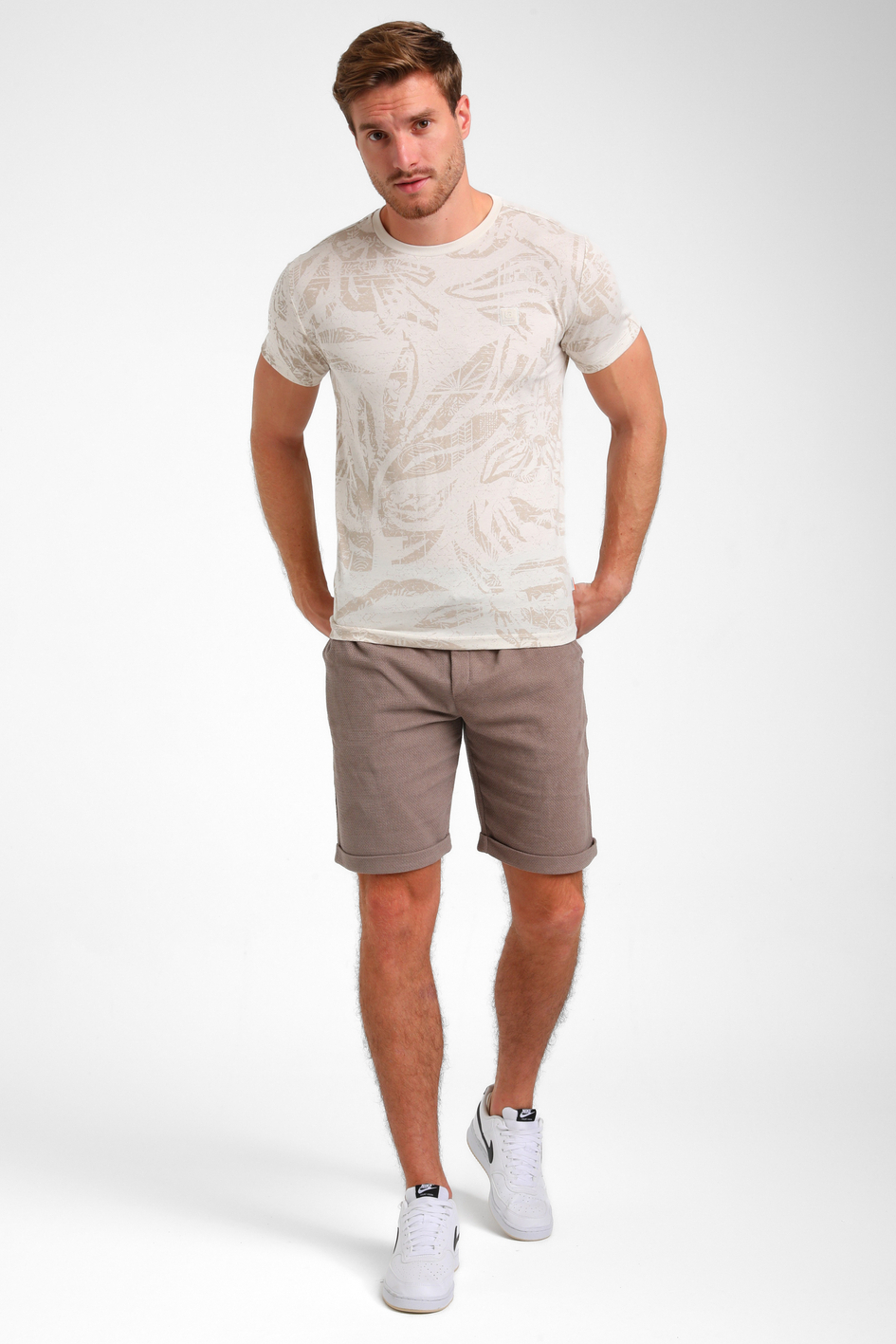 Dit casual heren T-shirt van Gabbiano is een stijlvolle keuze voor de zomerse dagen. Het shirt is vervaardigd uit 100% katoen, waardoor het luchtig en comfortabel aanvoelt. Dankzij de regular fit pasvorm biedt het voldoende bewegingsvrijheid, terwijl de ronde halslijn en korte mouwen zorgen voor een klassieke uitstraling. De zandkleurige basistint, gecombineerd met een subtiel grafisch patroon, maakt dit T-shirt een veelzijdige toevoeging aan je garderobe. Het Gabbiano T-shirt is perfect voor een ontspannen dagje uit of een zomers feestje. Combineer het met je favoriete shorts en sneakers voor een relaxte look, of draag het met een lichte spijkerbroek voor een casual maar verzorgde stijl. Het normale lengteontwerp zorgt ervoor dat het zowel nonchalant als netjes gedragen kan worden. Of je nu op pad gaat of thuis ontspant, dit T-shirt biedt de ideale mix van comfort en stijl.