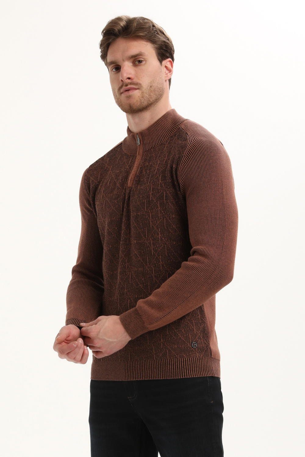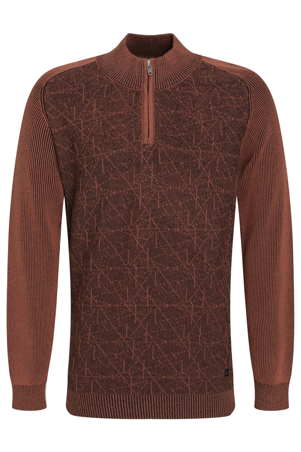 De Gabbiano trui in de kleur 5701 clay is een stijlvolle keuze voor de modebewuste man. Het gemêleerde patroon gecombineerd met een praktische ritssluiting en een high neck hals, geeft je de perfecte mix van comfort en stijl. Deze regular fit trui is gemaakt van een katoen-acryl mix, waardoor hij heerlijk zacht aanvoelt en ideaal is voor de winterdagen. De structuur van de stof voegt een extra dimensie toe aan het uiterlijk, waardoor jij er altijd verzorgd uitziet. Dankzij de normale lengte en lange mouwen biedt deze Gabbiano trui veelzijdigheid in je garderobe. Draag hem casual met een jeans voor een ontspannen dag uit, of combineer hem met een nette broek voor een meer geklede look. De warme, aardse tint maakt het een makkelijke match met verschillende kleuren en stijlen, of je nu een dagje op kantoor bent of een avondje met vrienden. Een veelzijdige keuze die zowel stijl als comfort biedt.