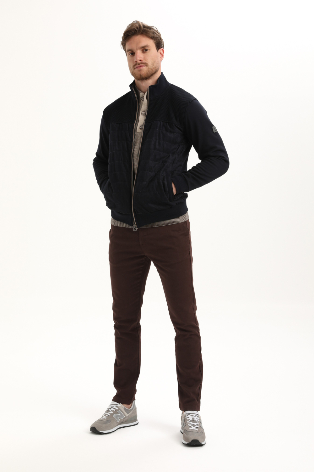 Dit navy vest van Gabbiano voegt een urban stijl toe aan je wintergarderobe. Gemaakt van een comfortabele mix van 62% katoen, 36% polyester en 2% elastan, biedt het een aangename pasvorm met voldoende bewegingsvrijheid. Het vest heeft een high-neck kraag en een stevige ritssluiting die zowel praktisch als stijlvol is. De suedine-textuur op de voorkant geeft een modern accent, terwijl de ritszakken zorgen voor extra functionaliteit. Door de regular fit en de normale lengte is dit vest ideaal voor verschillende gelegenheden. Of je nu een dagje uit plant in de stad of een relaxte avond thuis, dit vest past zich makkelijk aan elke situatie aan. De lange mouwen en stevige stof zorgen voor extra warmte tijdens koude dagen. Combineer met een casual shirt en jeans voor een complete look die zowel comfortabel als modieus is.