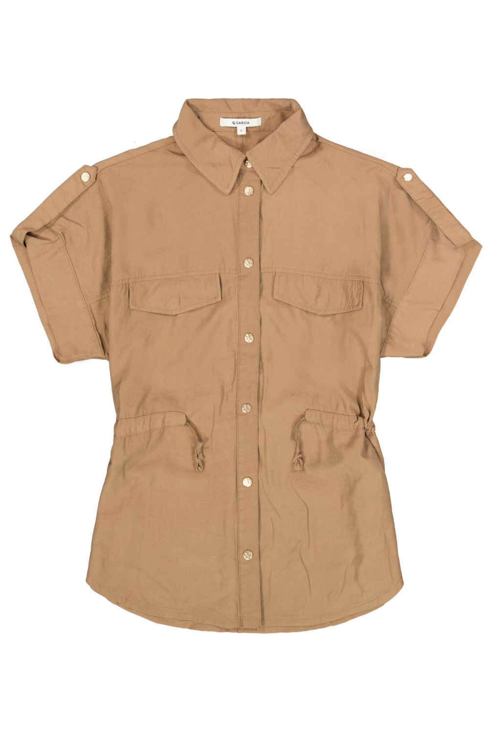 Deze gemêleerde damesblouse van Garcia is een veelzijdige toevoeging aan je lente-garderobe. De oversized pasvorm en het zachte materiaal van 87% viscose en 13% polyamide bieden je een comfortabele en luchtige ervaring voor casual dagen. Met korte mouwen en twee praktische borstzakken is deze blouse niet alleen stijlvol maar ook functioneel. De knoopsluiting en de klassieke puntkraag geven de blouse een verfijnde uitstraling waarmee je perfect voor de dag komt. Met zijn neutrale tint en ontspannende ontwerp is deze blouse perfect voor diverse informele gelegenheden. Combineer hem met een lichte jeans voor een dagje winkelen of draag hem over een rok voor een ontspannen picknick in het park. De subtiele details, zoals de verstelbare koordjes in de taille, zorgen voor een extra element van personalisatie en stijl. Of je nu binnen of buiten bent, deze Garcia blouse past zich moeiteloos aan jouw stijl en comfortbehoeften aan.