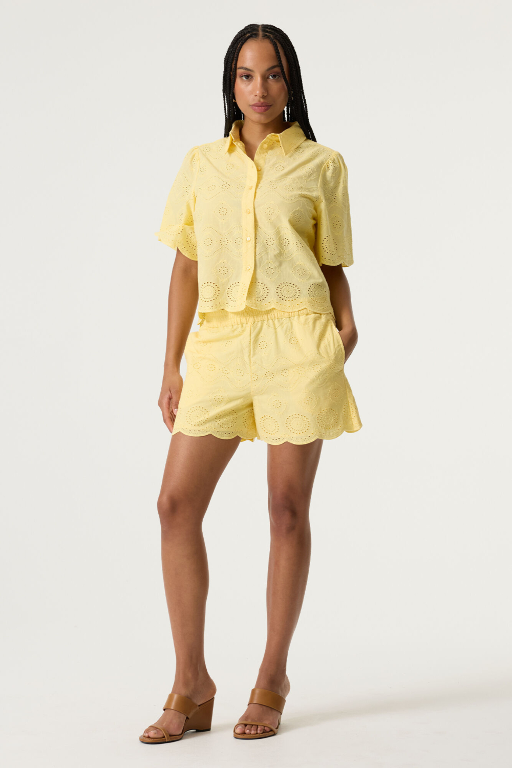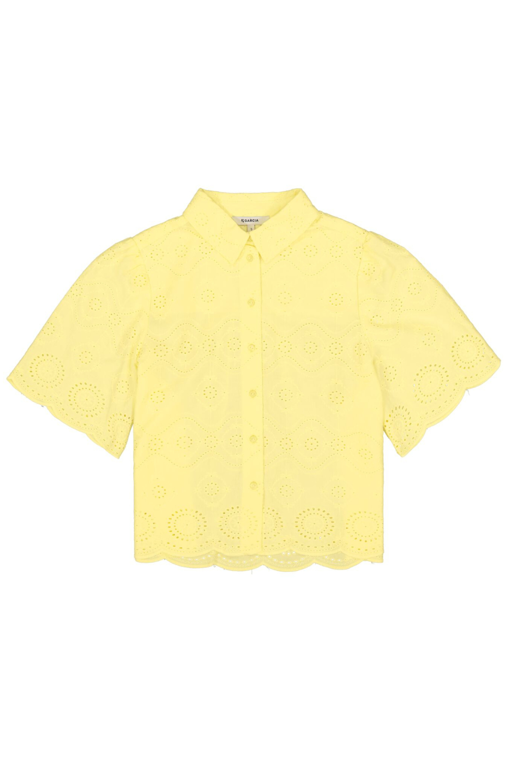 Deze zomerse damesblouse van Garcia brengt kleur en luchtigheid in je garderobe. Uitgevoerd in een vrolijke gele tint, is deze blouse vervaardigd van 100% katoen, wat zorgt voor een ademende en comfortabele pasvorm. De regular fit en het ajourpatroon geven de blouse een speelse uitstraling. Met een klassieke puntkraag en knoopsluiting blijft het ontwerp verfijnd en veelzijdig voor diverse gelegenheden. Dankzij het luchtige ontwerp en de korte mouwen is de blouse ideaal voor warme zomerdagen. Of je hem nu draagt tijdens een ontspannen lunch in de stad of een dagje in het park, de blouse biedt je de vrijheid om je stijl moeiteloos aan te passen. Combineer hem met een lichte short voor een casual look, of draag hem met een elegante rok voor een meer geklede uitstraling. De natuurlijke tint en het aantrekkelijke patroon maken hem makkelijk te combineren met diverse kleuren en stijlen.