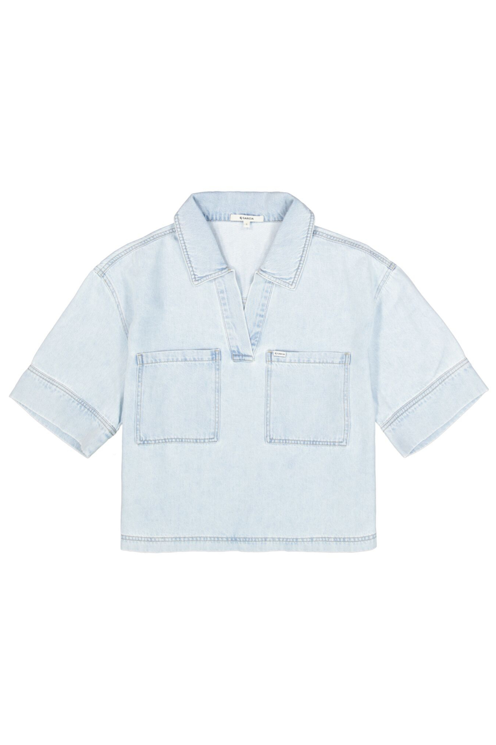 Deze Garcia denim blouse voor dames is een stijlvolle toevoeging aan je lente-garderobe. Met een zachte bleached wash en 100% katoen, biedt de blouse een comfortabele pasvorm die je gemakkelijk de hele dag kunt dragen. De regular fit zorgt voor een ontspannen uitstraling, terwijl de korte mouwen en de puntkraag een moderne touch toevoegen aan het klassieke design. De twee borstzakken zijn niet alleen praktisch, maar geven de blouse ook een subtiele flair. De lichte denimkleur van deze blouse maakt het een veelzijdig kledingstuk voor verschillende gelegenheden. Draag het tijdens een casual dagje uit met vrienden of naar een informele bijeenkomst. Het combineert moeiteloos met een comfortabele jeans of een luchtige rok, afhankelijk van de gelegenheid. De normale lengte en de stevige, maar soepele stof maken het een betrouwbaar item dat je keer op keer zult pakken. Voeg deze Garcia blouse toe aan je collectie voor een frisse, veelzijdige look deze lente.