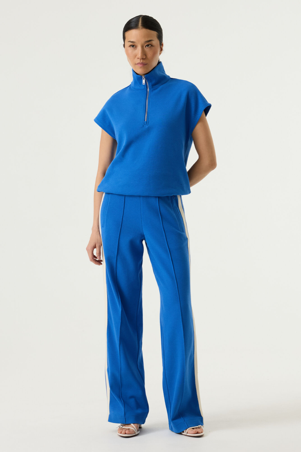 Deze stijlvolle blauwe damesbroek van Garcia is een veelzijdige aanwinst voor je garderobe. De broek heeft een comfortabele wide leg pasvorm, die zowel bewegingsvrijheid als een modieuze uitstraling biedt. Met zijn opvallende streepdetails langs de zijkanten en de praktische ritszakken, is deze broek niet alleen praktisch maar ook trendy. De elastische boord en de reguliere taillehoogte maken het een ideale keuze voor dagelijks gemak en comfort. Gemaakt voor het lente seizoen, past deze Garcia broek perfect bij diverse casual outfits. Combineer het met een basic top voor een dagje uit of stijl het met een lichte sweater voor een comfortabele avond look. Dankzij het duurzame ontwerp kun je rekenen op veelvuldig draagplezier, zonder compromis op stijl. Of je nu op pad gaat voor een lunch met vrienden of een ontspannen dag thuis, deze broek is een betrouwbare keuze die je eenvoudig kunt mixen en matchen.