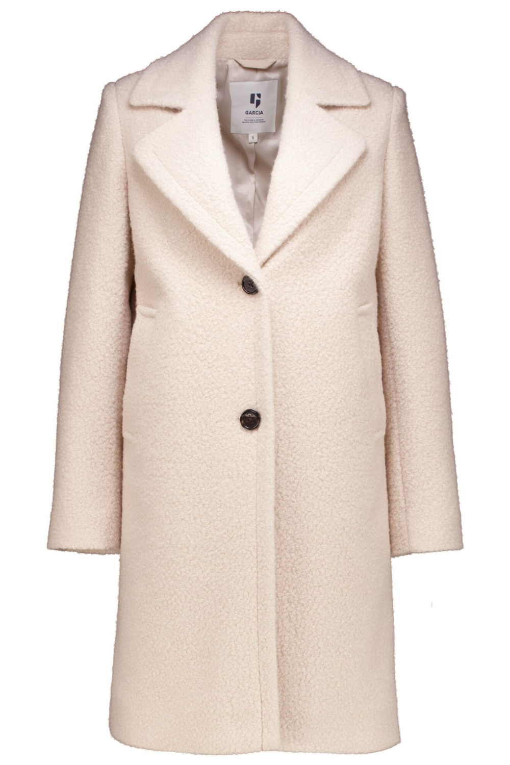 Deze elegante halflange jas van Garcia is een onmisbare toevoeging aan je wintergarderobe. De zachte beige tint gecombineerd met een structuurpatroon geeft de jas een verfijnde uitstraling. Met een regular pasvorm en lange mouwen garandeert hij een comfortabele en toch stijlvolle fit. De jas is gemaakt van 100% polyester en is perfect voor koude dagen. De reverskraag en knoopsluiting voegen een klassieke touch toe, terwijl de steekzakken praktisch zijn voor dagelijkse benodigdheden.