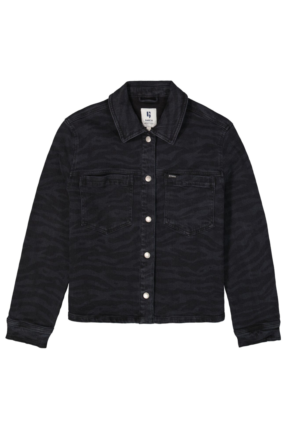 Met deze modieuze denim jas van Garcia geef je jouw wintergarderobe een stoere update. Deze jas heeft een regular fit en is afgewerkt met een verfijnd animal patroon in een stijlvolle 1755 Off Black tint. De drukknopen en de puntkraag voegen subtiele details toe die het design een eigentijds karakter geven. Dankzij de comfortabele mix van 71% katoen, 28% polyester en 1% elastan, biedt de jas een aangenaam draagcomfort, perfect voor dagelijks gebruik. De jas is voorzien van praktische borstzakken en lange mouwen, wat hem geschikt maakt voor diverse seizoenale activiteiten. Of je nu een dagje de stad in gaat of een informele bijeenkomst hebt, deze korte Garcia jas is een veelzijdige keuze die gemakkelijk gecombineerd kan worden. Match hem met een casual jeans en sneakers voor een ontspannen look, of kies voor een nette rok en enkellaarzen om je outfit een stijlvolle twist te geven. Hiermee creëer je moeiteloos verschillende stijlen, ongeacht de gelegenheid. Meer informatie: De totale lengte is 52 cm bij maat S.