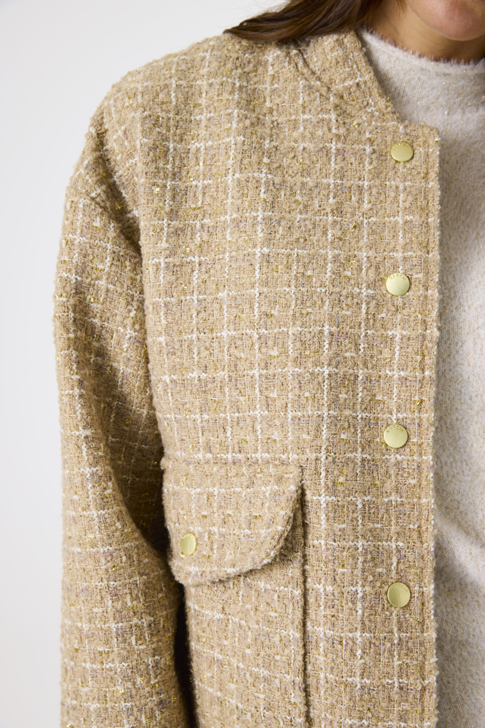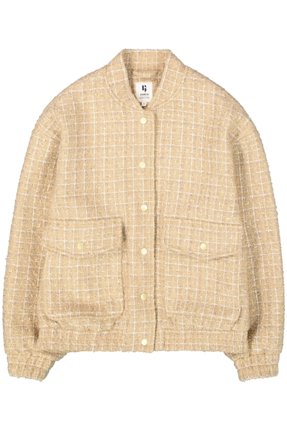 Vul je wintergarderobe aan met deze stijlvolle damesjas van Garcia. Met zijn casual uitstraling en regular fit is deze jas een veelzijdige keuze voor diverse gelegenheden. De subtiele glitters in het patroon geven een speelse twist aan het ontwerp, terwijl de klepzakken niet alleen praktisch zijn maar ook bijdragen aan de trendy look. De drukknoopsluiting en ronde hals geven de jas een moderne en minimalistische uitstraling, perfect voor een casual dagje uit of een informele afspraak. Deze korte jas is ideaal voor de koudere maanden dankzij de voering van polyester die je warm houdt. De lange mouwen en het moderne ontwerp maken het makkelijk te combineren met zowel een jeans als een jurk, waardoor je moeiteloos een modieuze outfit creëert. Of je nu een wandeling maakt door de stad of een kopje koffie gaat drinken met vrienden, deze Garcia jas zorgt voor comfort en stijl. Voeg een extra laag toe aan je look met deze veelzijdige jas en ervaar zelf het gemak en de elegantie die het biedt. Meer informatie: De totale lengte is 59 cm bij maat S.