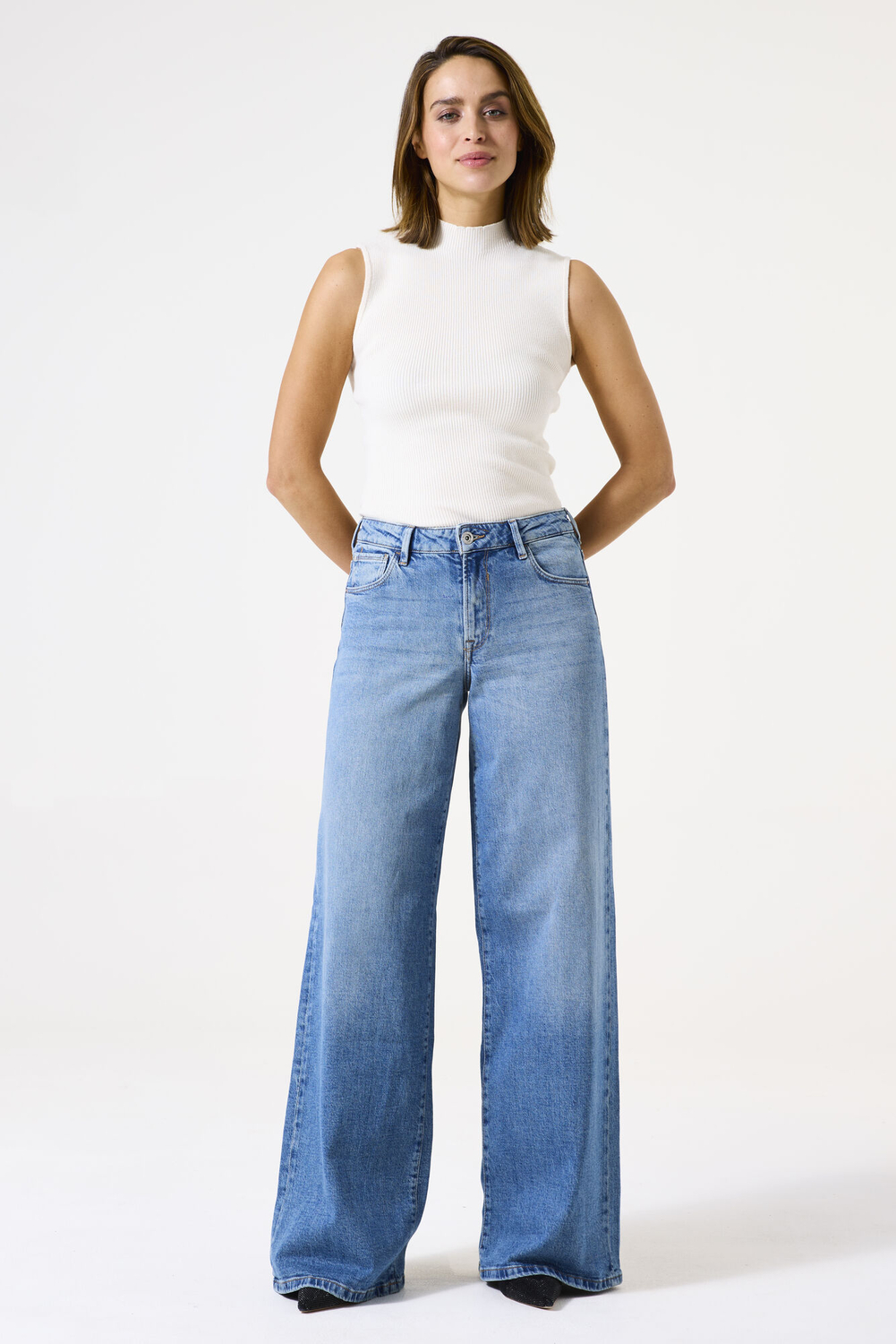 Deze stijlvolle Garcia jeans met wide leg pasvorm is een onmisbaar item in je garderobe. De high waist en stonewash wassing geven een moderne uitstraling die zowel tijdloos als trendy is. De jeans is vervaardigd uit 99% katoen en 1% elastaan, wat zorgt voor een comfortabele en flexibele fit. Het 5-pocket ontwerp voegt een klassieke touch toe, terwijl de knoop/rits-sluiting zorgt voor een eenvoudige en betrouwbare sluiting. Of je nu op zoek bent naar een casual outfit voor een dagje uit of iets stijlvollers voor een avondje met vrienden, deze jeans past bij elke gelegenheid. Combineer hem met een simpel T-shirt voor een relaxte look of met een blouse voor een meer verfijnde stijl. De normale lengte maakt hem makkelijk te dragen met verschillende soorten schoenen, van sneakers tot elegante hakken. Deze duurzame jeans van Garcia is niet alleen een aanvulling op je dagelijkse outfits, maar ook een bewuste keuze voor je kledingcollectie.