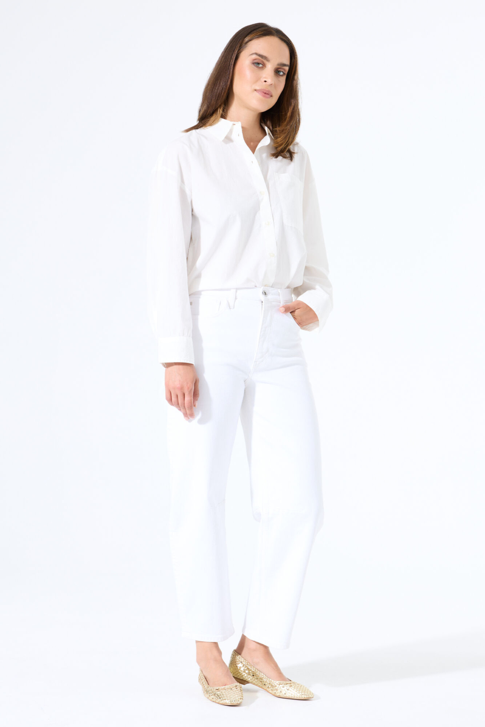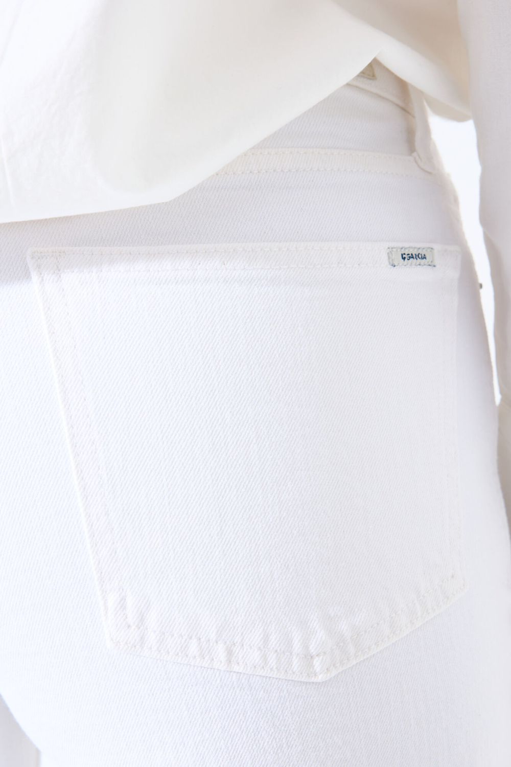 De Garcia damesjeans in witte rinsewash is een elegante keuze voor je garderobe. Met de barrel fit en een regular waist biedt deze jeans zowel stijl als comfort. Het 5-pocket design zorgt voor praktische opbergmogelijkheden, terwijl de knoop- en ritssluiting een stevige pasvorm garandeert. Deze jeans is vervaardigd uit een zachte stof van 99% katoen en 1% elastaan, welke subtiele stretch toevoegt voor extra bewegingsvrijheid. Dankzij de tijdloze witte kleur en de verzorgd afgewerkte zakken is deze denim perfect voor diverse gelegenheden. Of je nu een casual dag op kantoor hebt of een weekendje weg plant, deze Garcia spijkerbroek vormt een uitstekende basis voor talloze outfits. Combineer hem met een luchtige blouse voor een frisse, zomerse look, of met een strak T-shirt voor een moderne, urban stijl. Met zijn normale lengte is de jeans geschikt voor verschillende schoenen, van sneakers tot elegante hakken. Dit veelzijdige kledingstuk is perfect om het hele jaar door te dragen en gemakkelijk te combineren met je favoriete items.
