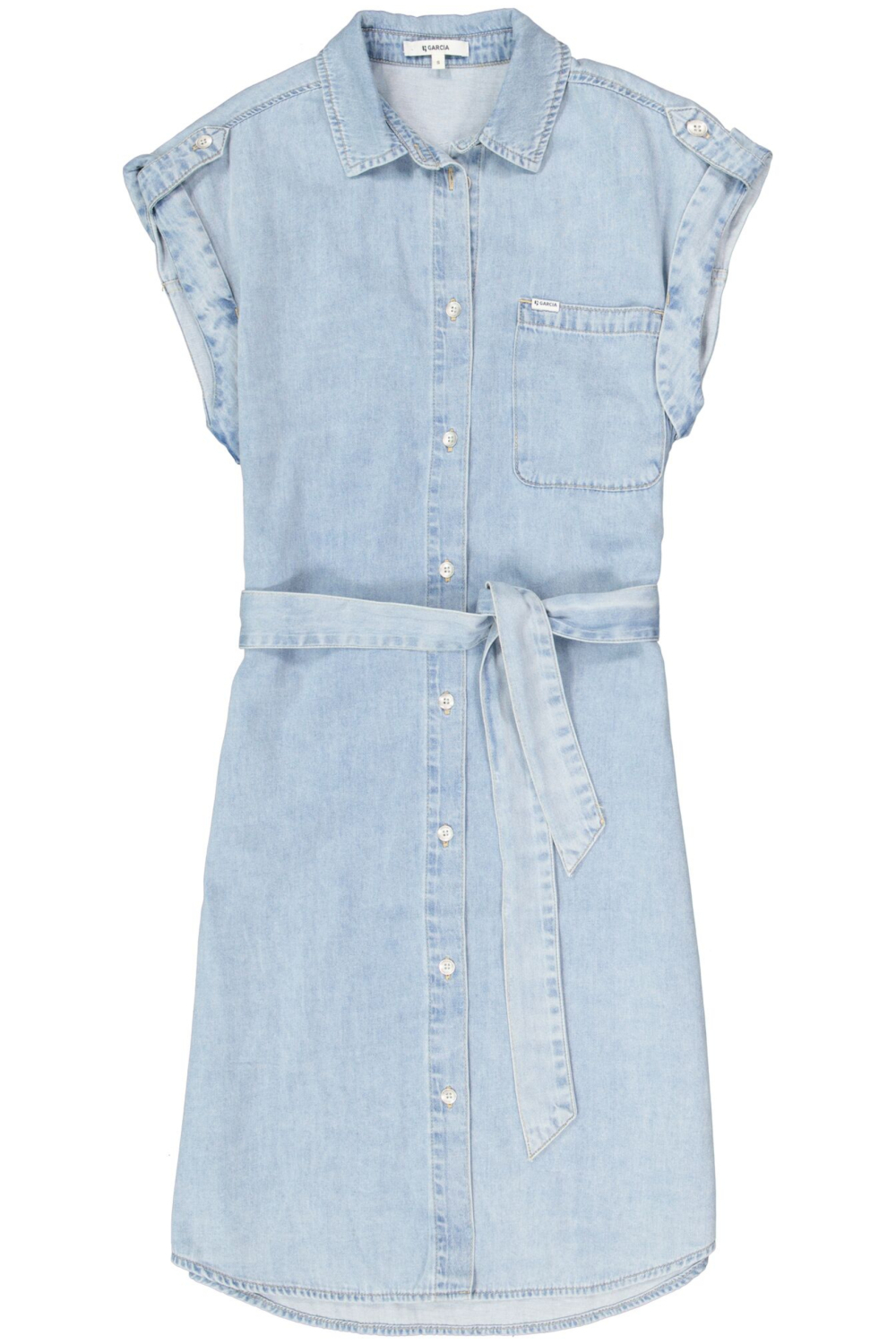 De Garcia Denim Jurk is een veelzijdige toevoeging aan je zomercollectie. Deze halflange jurk heeft een reguliere pasvorm die zorgt voor zowel comfort als stijl. De bleached wash en de puntkraag geven de jurk een casual uitstraling, perfect voor een zonnige dag uit. De kapmouwen en de knoopsluiting dragen bij aan de luchtige en ontspannen look van de jurk. Gemaakt van 100% katoen, biedt het materiaal ademend vermogen en zachtheid tegen de huid. Dankzij de borstzakken en de subtiele riem in de taille, voeg je gemakkelijk een speels detail toe aan je outfit. Of je nu een middag in de stad doorbrengt of een strandwandeling maakt, deze Garcia Denim Jurk past altijd. Combineer de jurk met sandalen voor een casual look of voeg accessoires toe voor een iets formelere gelegenheid. Laat de eenvoud en tijdloosheid van dit ontwerp je begeleiden bij elke zomerse uitstap. Meer informatie: De totale lengte is 98 cm bij maat S.
