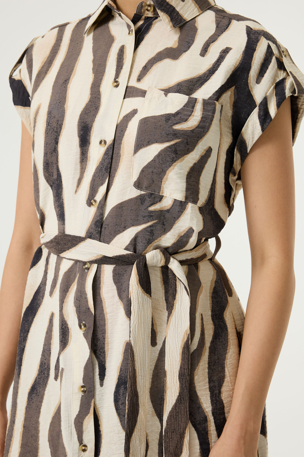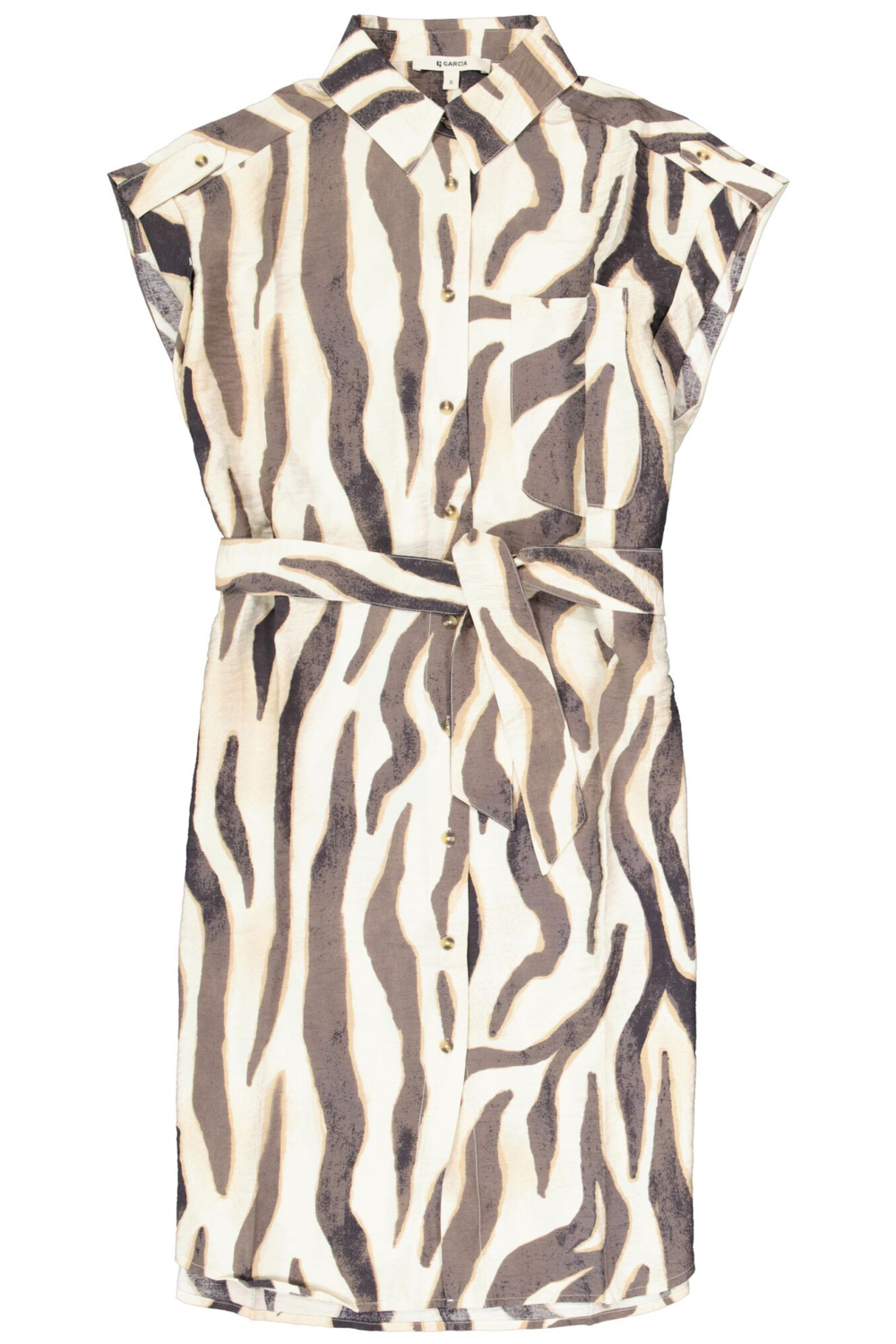 Deze halflange damesjurk van Garcia valt op door zijn stijlvolle animalprint in de kleur Turtledove. Gemaakt van een lichte mix van 88% viscose en 12% polyamide, biedt deze jurk een comfortabele en ademende pasvorm, ideaal voor zomerse dagen. De jurk heeft een regular fit met een knoopsluiting en een elegante puntkraag, die zorgt voor een subtiele verfijning. De kapmouwen voegen een luchtige en speelse touch toe, waardoor je je makkelijk en vrij kunt bewegen. De Garcia-jurk is ontworpen voor een casual stijl, perfect om te dragen tijdens ontspannen dagen of informele bijeenkomsten. Of je nu een wandeling maakt in het park of een middag doorbrengt met vrienden, deze jurk is een veelzijdige keuze. De bijpassende ceintuur zorgt voor een flatterend silhouet en maakt de look compleet. Met zijn opvallende print en comfortabele snit, is deze jurk een betrouwbare favoriet in elke zomergarderobe. Meer informatie: De totale lengte is 100 cm bij maat S.
