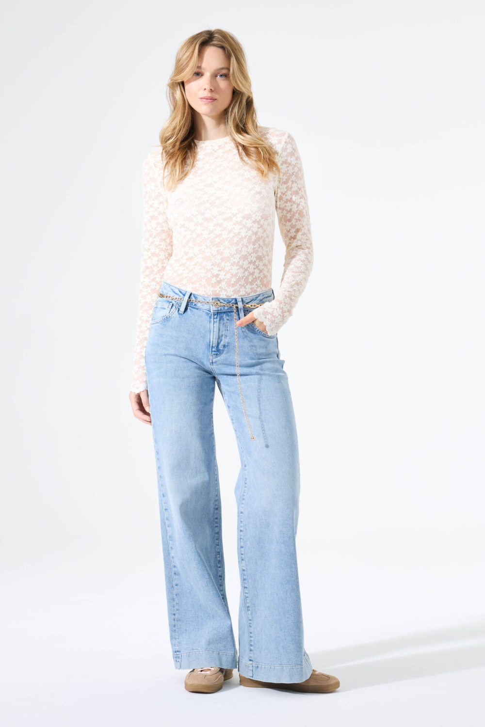 Dit elegante kantpatroon T-shirt van Garcia is een fijne toevoeging aan je lente garderobe. Met een regular fit en lange mouwen biedt dit dames T-shirt een casual uitstraling die zowel chic als comfortabel is. Gemaakt van een zachte mix van 95% polyamide en 5% elastan, is het een lichte top met een prachtige transparante look die makkelijk ademt. De ronde hals en het subtiele kantdessin geven een speelse twist waarmee je moeiteloos overdag voor de dag komt. Combineer deze top met een lichte jeans voor een casual dagje uit of draag hem met een nette rok voor een meer verfijnde gelegenheid. Of je nu gaat lunchen met vrienden of een wandeling maakt in het park, dit Garcia T-shirt past zich perfect aan jouw stijl aan. Voeg deze veelzijdige top toe aan je collectie en geniet ervan hoe hij je outfits opfleurt.