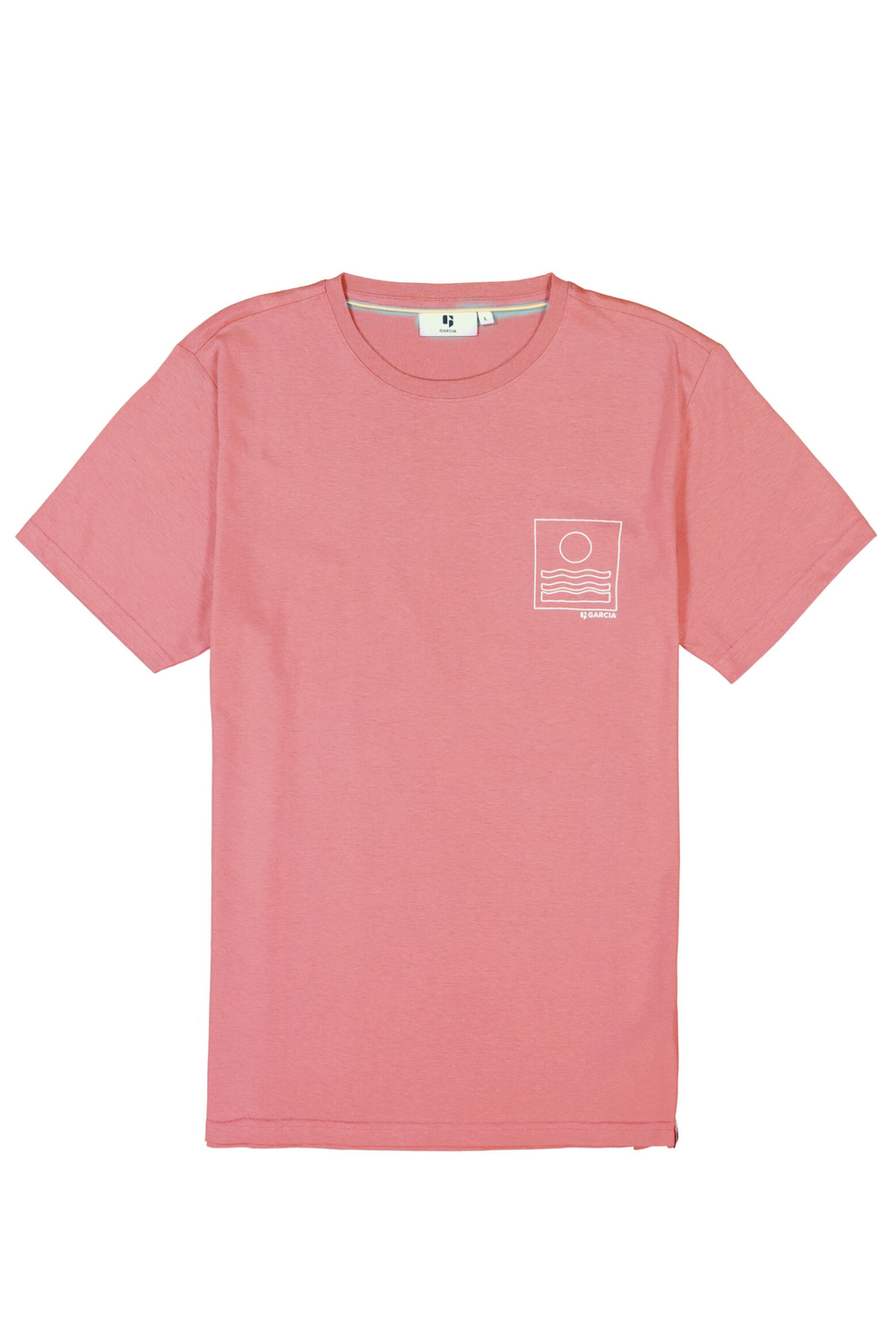 Dit stijlvolle Garcia T-shirt in de kleur dark pink is een perfecte keuze voor de zomer. De regular fit zorgt ervoor dat het prettig draagt, zelfs op warme dagen. Gemaakt van 100% katoen, biedt dit shirt een ademende stof die zacht aanvoelt op je huid. Het grafische patroon op de borst voegt een speels detail toe aan de verder eenvoudige look. Hierdoor is het T-shirt een veelzijdige keuze voor jouw casual garderobe. De ronde hals en korte mouwen geven het T-shirt een klassieke uitstraling, waardoor het ideaal is voor allerlei gelegenheden. Of je nu een dagje op pad gaat of een ontspannen avond met vrienden hebt, dit shirt past gegarandeerd bij je plannen. Combineer het met een lichte jeans of een comfortabele short voor een moeiteloze, zomerse look die zowel stijlvol als comfortabel is.